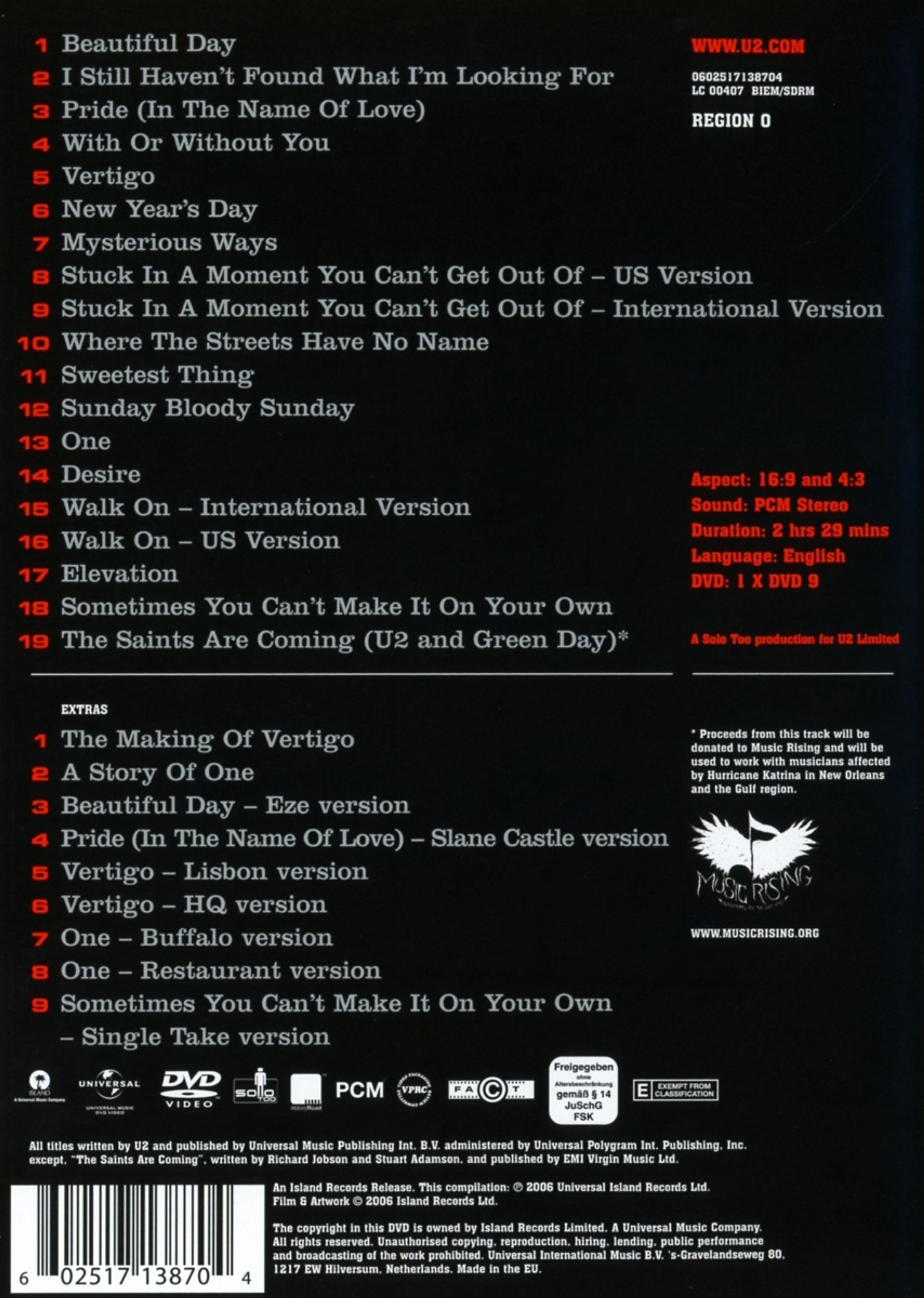 Eine Sammlung der 18 Musikvideos zu der parallel erschienenen CD “18 Singles”, angefangen beim Video zu “New Year’s Day” aus dem Jahr 1982 bis hin zur atemberaubenden Cover-Version von “The Saints Are Coming”, die U2 gemeinsam mit Green Day im September 2006 einspielte.