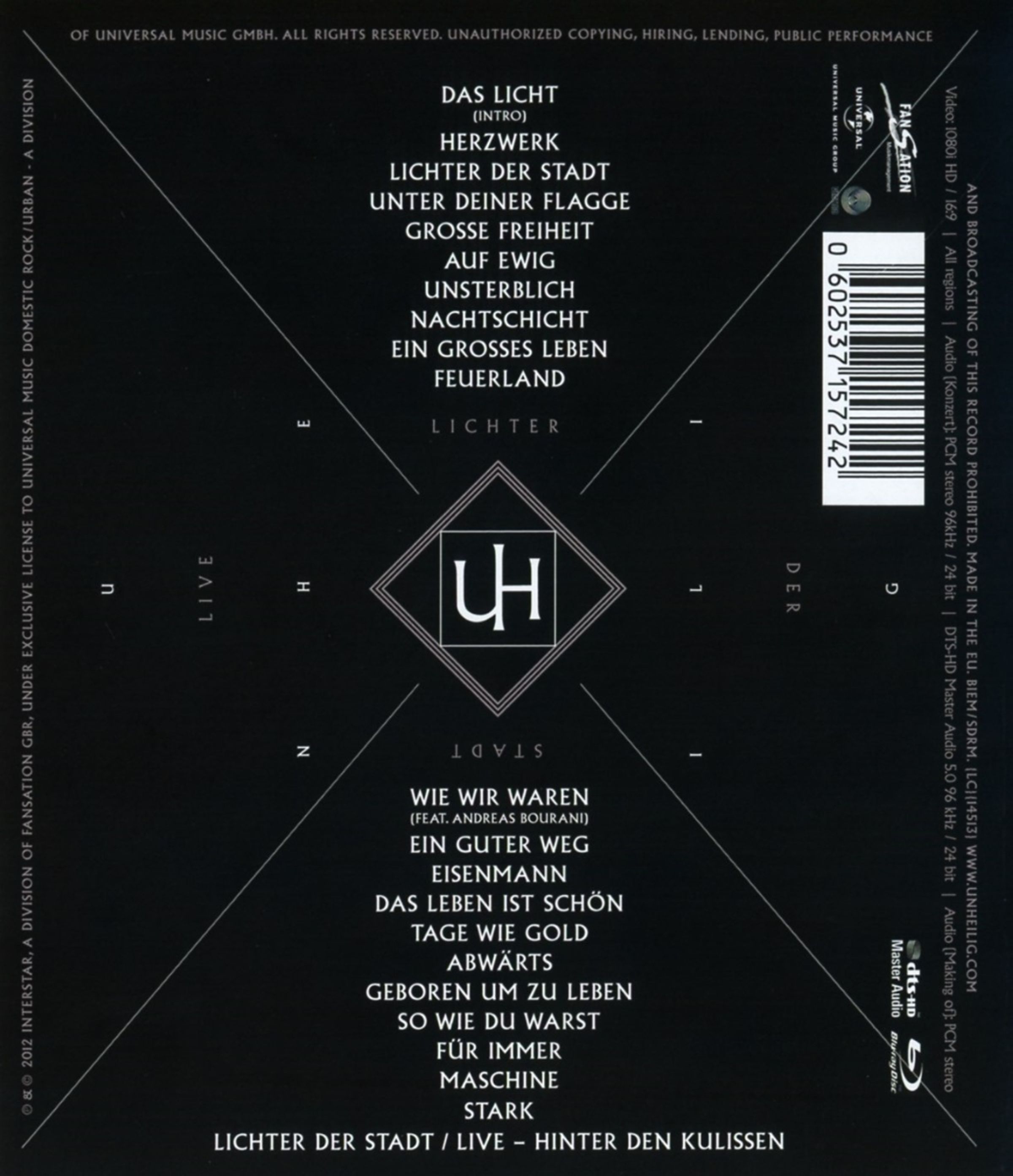 Die Hörproben gehören zum Artikel Unheilig: Lichter der Stadt: Live (Limited Special Edition) (2 DVDs + 2 CDs + Fotobuch) (CD). Das Tracklisting kann bei diesem Artikel ggf. abweichen.