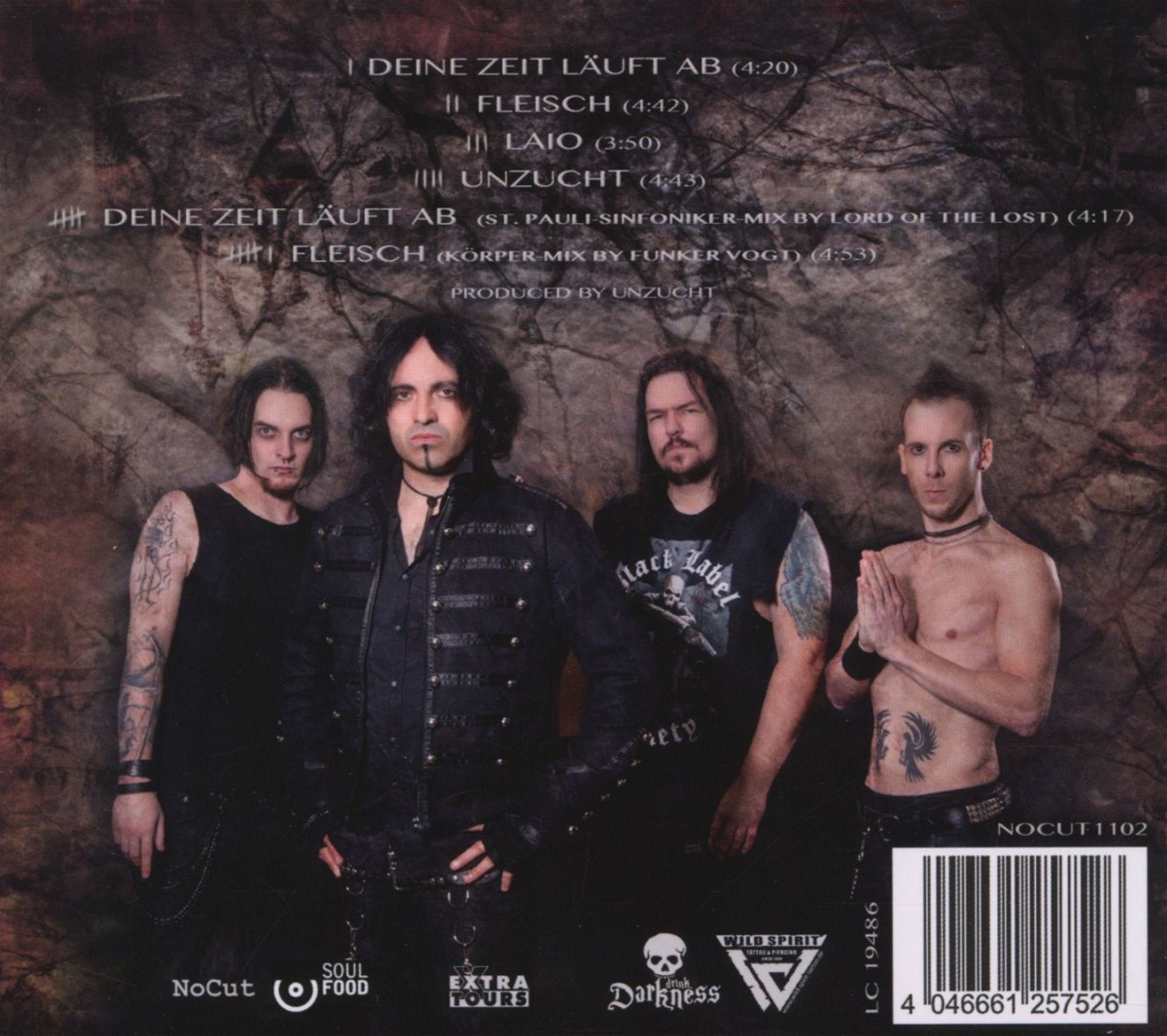 Mit dieser Debut-EP bringt die Unzucht insgesamt 6 Tracks unter das wartende Volk. Der Titelsong ‘Deine Zeit Läuft Ab‘ liefert einen perfekt Eindruck, was man von Unzucht erwarten darf: Hooks, Härte, Melodien, Beats. Neben den vier hochkarätigen Kompositionen enthält die EP zwei total unterschiedliche Remixes von Funker Vogt und Lord Of The Lost, einer clubby, einer von romantischer Größe.