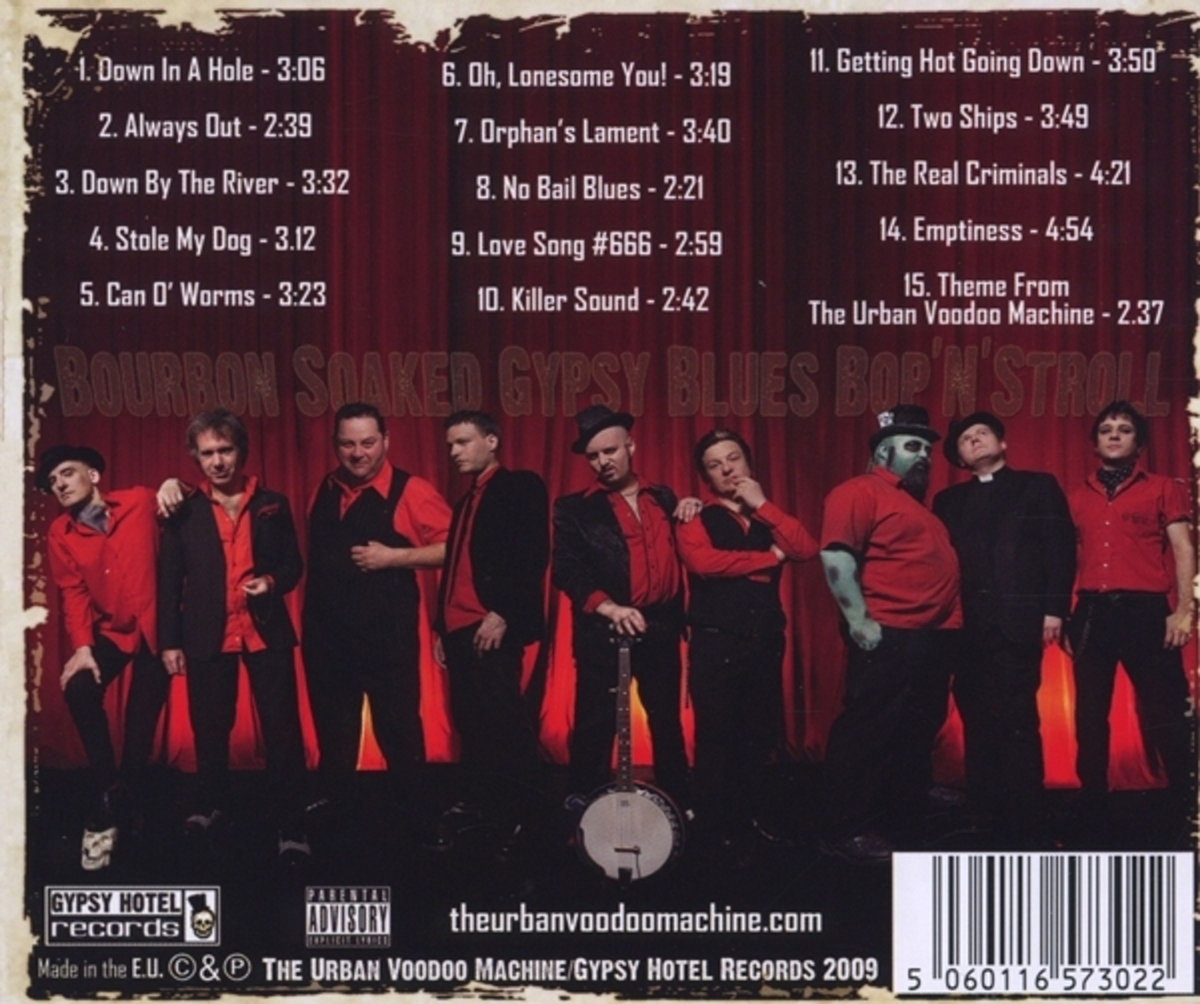 The Urban Voodoo Machine aus UK treibt seit 2003 seekrank und besoffen von einer Bar zur nächsten und hat ihre Erfahrungen auf diesem Debüt in 15 Bargeschichten für die Hinterbliebenen zusammengefasst. Bei einer Bandbesetzung von 9 Mann kommen da schon ein paar Erfahrungen und Erlebnisse zusammen!