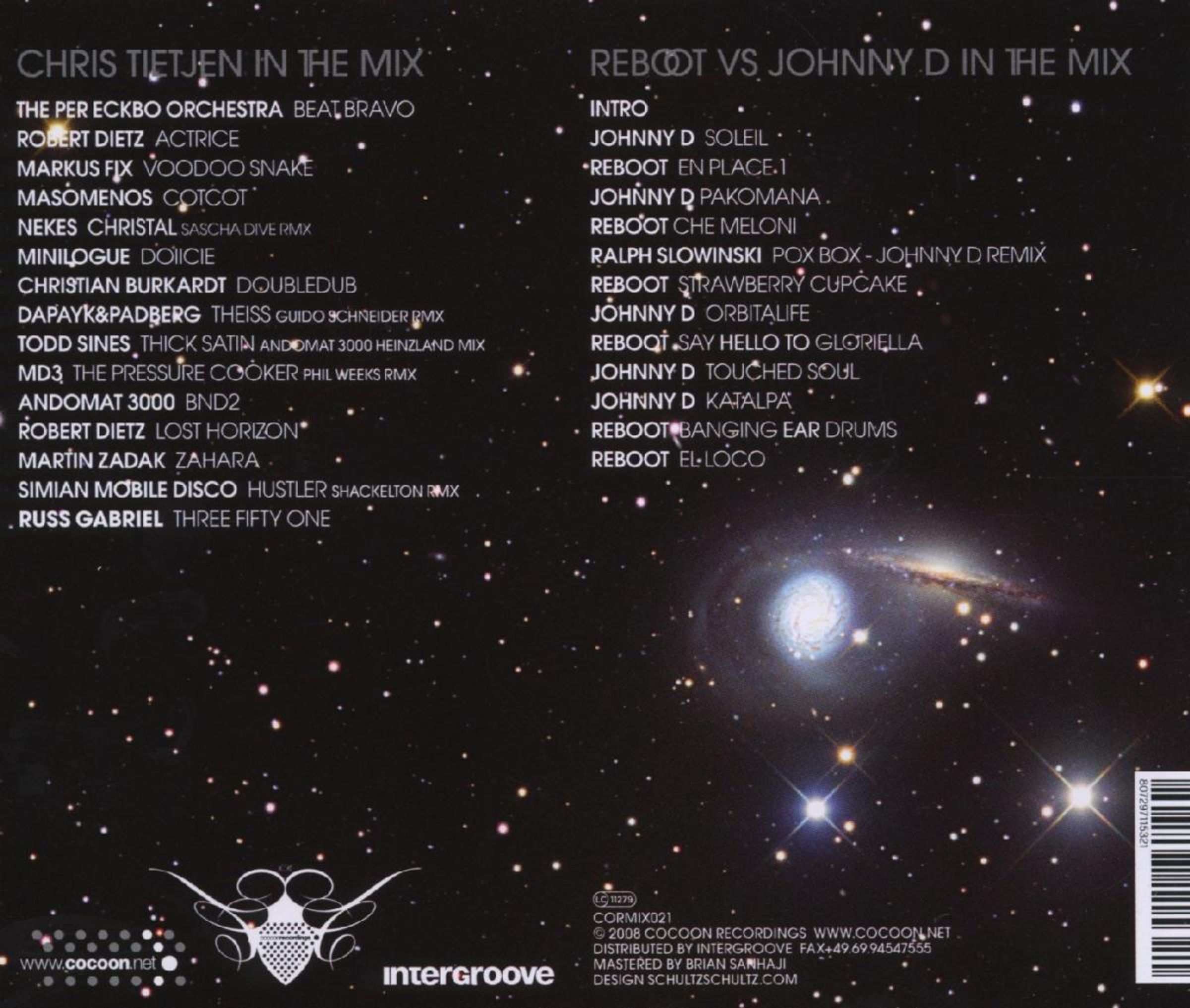 Mit der Cocoon Summer Mix CD und ihren Cosmic Electronic Grooves auf zwei CDs gibt Commander Sven einen Vorgeschmack auf den Angriff der Disco Invaders. Auf dem ersten Silberling öffnet Chris Tietjen seinen Plattenkoffer und hat mit Tracks von Newcomern wie Minilogue, Markus Fix oder Robert Dietz einen smoothen funky Mix zusammengestellt, der das Motto der diesjährigen Saison perfekt einfängt: groovy, funky, housy. Mit seinen 22 Jahren hat sich Chris in den letzten Jahren national wie international eine immer größere Fangemeinde erspielt und sich zu einem wahren Botschafter entwickelt, der es versteht, den Cocoon Vibe musikalisch wiederzugeben und ein Stück der Stimmung auf die Dancefloors dieser Welt zu tragen. Die zweite CD knüpft nahtlos an den Sound der ersten an und versprüht ebenfalls einen groovigen und housigen Sound, der zum Sommer passt wie Cocoon zu Ibiza. Mit den Newcomern Reboot und Johnny D, die diese Scheibe gemeinsam gemixt haben, rücken zwei DJs aus dem Rhein Main Gebiet in den Vordergrund und verarbeiten in ihrem Mix auch unveröffentlichtes eigenes Material, womit sie dem Ganzen ihre spürbar eigene Handschrift verpassen. Sowohl Frank Heinrich (Reboot) als auch Johnny Debese sind neu in der Cocoon Ibiza Mannschaft und machten in den letzten 18 Monaten bereits mit zahlreichen Produktionen auf sich aufmerksam. Während Johnny sein Debut auf Oslo Rec. gab, sorgte Frank mit seinem Release auf Cadenza für Furore. Und da beide zur Zeit wie verrückt an neuen Produktionen und Projekten arbeiten, dürfen wir uns noch auf jede Menge Hot Stuff freuen. Wer also den Angriff der Disco Invaders nicht mehr erwarten kann und sich bereits vor dem Startschuss auf den Sommer zu Hause eingrooven möchte, für den sind diese beiden Mixe genau das richtige.
