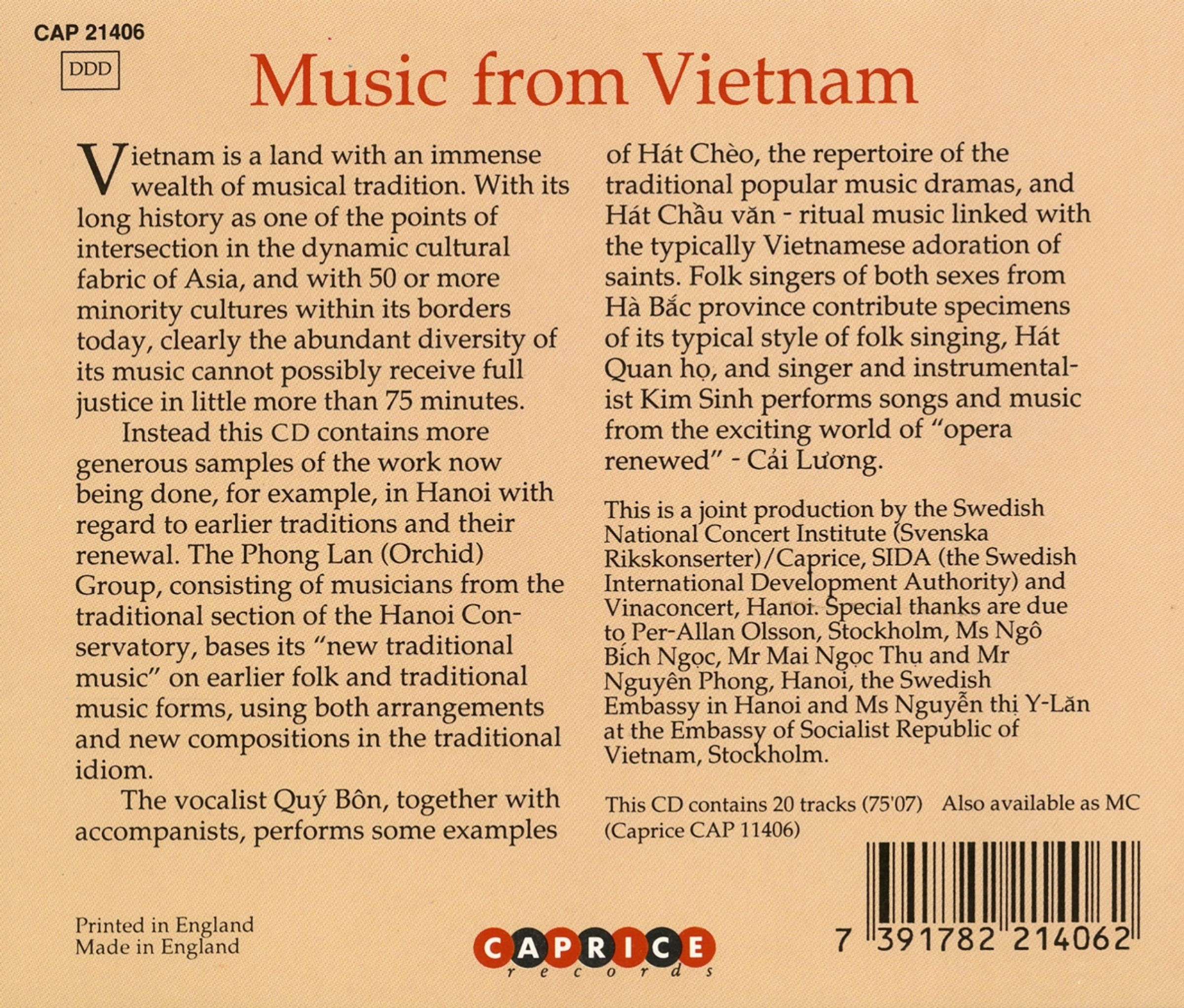 Die Aufnahmen auf dieser CD spiegeln die Arbeit wider, die in den 1990er Jahren in Hanoi und Umgebung im Hinblick auf ältere Traditionen und deren Erneuerung geleistet wurde.