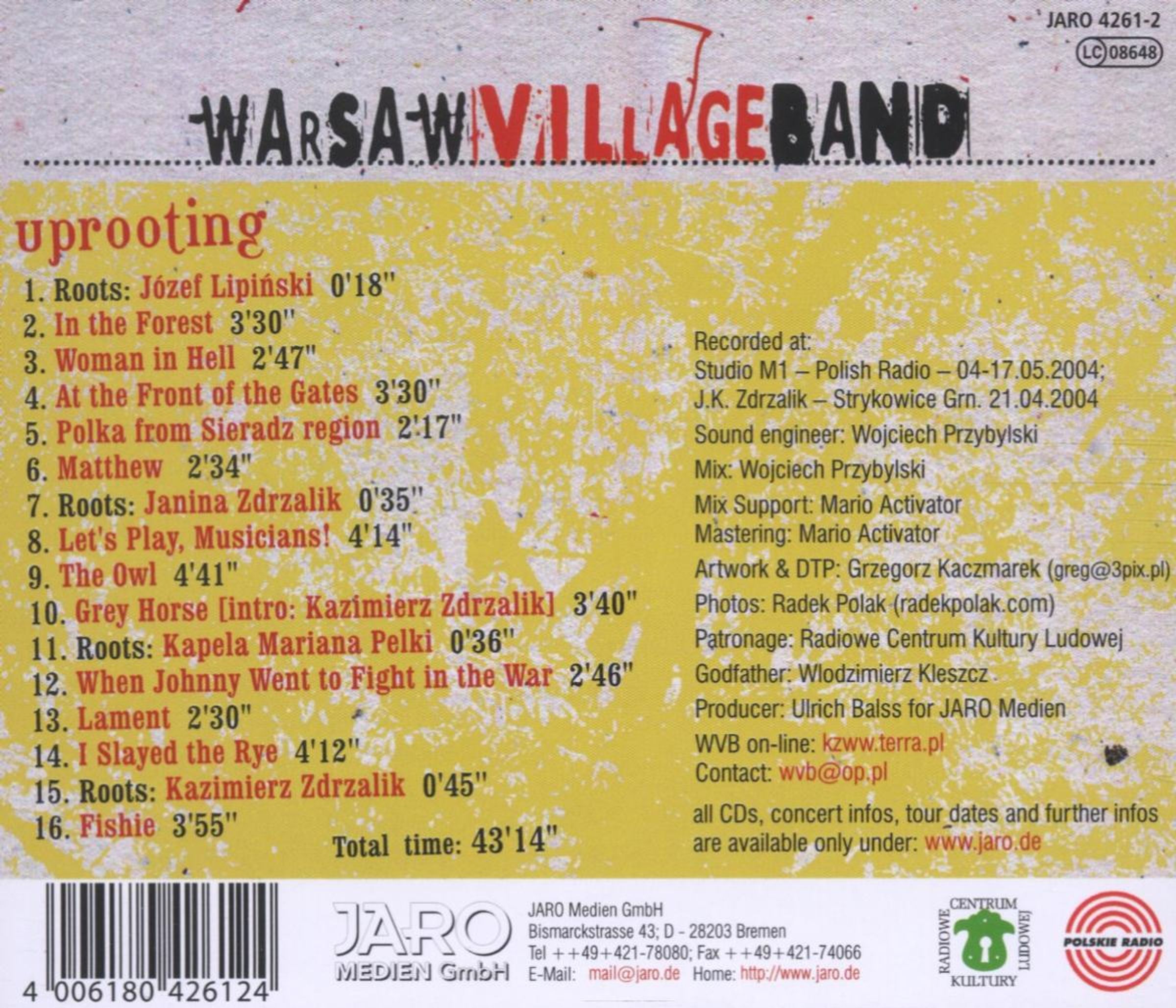 P. Bickel in Stereo 12/04: "Hardcore-Folk aus Polen" hieß es bei ihrer letzten CD "People´s Spring". Eine treffende Formulierung für eine Musik, die sich traditio- nelle Volksmusik aneignet, dieser aber mit frech-forscher Punk-Energie einen Tritt in den Hintern gibt. Das er- innert konzeptionell etwa an die Pogues, musikalisch wegen der "schreienden" Gesangstechnik jedoch vor allem an Värttinä. "Unprooting" sprudelt, pulsiert, peitscht an."Disk 1 von 1 (CD)