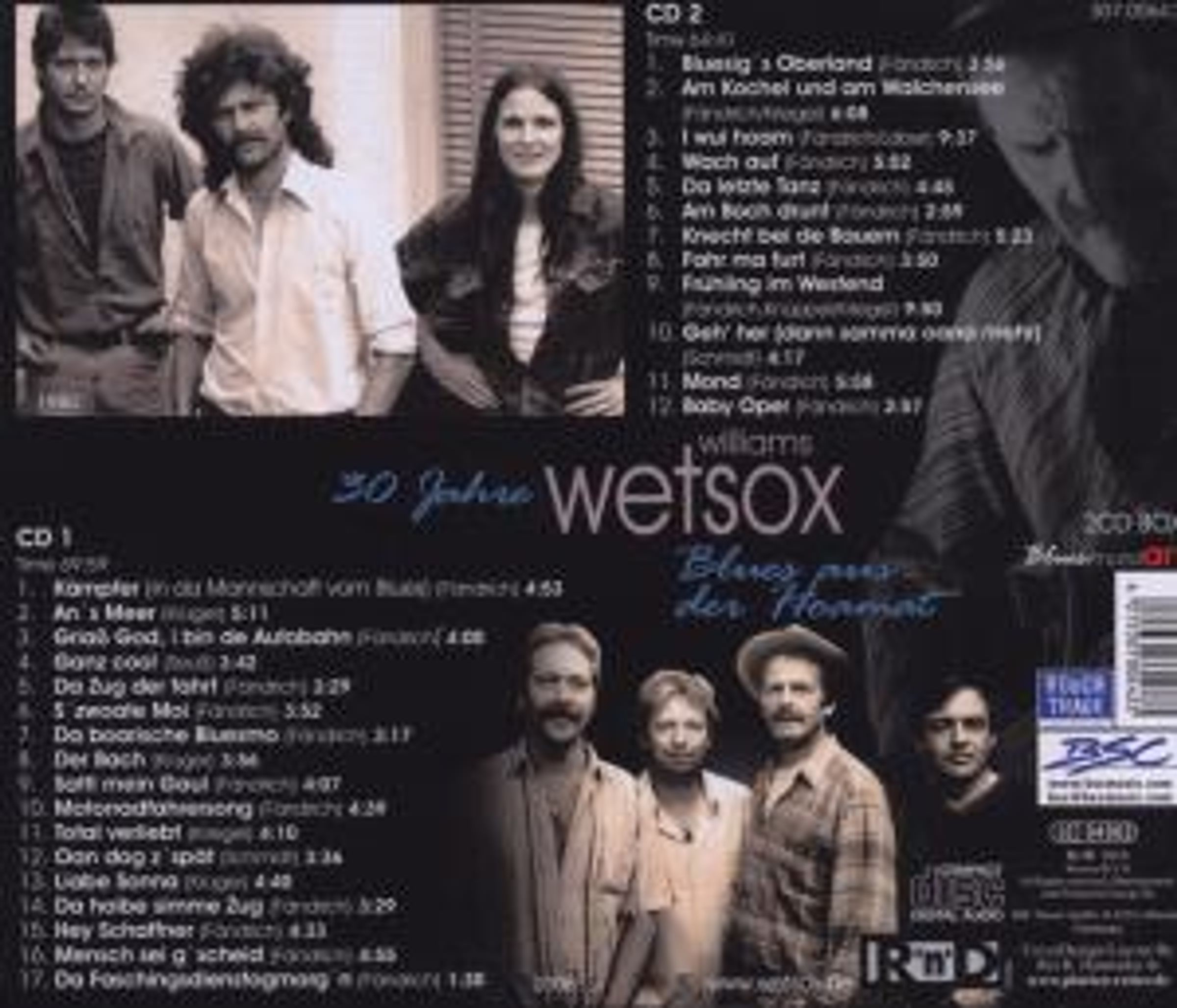 Williams Wetsox spielen seit Sylvester 1979 / 80 den boarischen Blues. In dieser Zeit veröffentlichten sie 4 LPs und 5 CDs. Originell und treffend mit Musik professionell kombiniert brauchen sich die Wetsox im Vergleich mit internationalen Acts nicht zu verstecken. Williams Wetsox spielen ihren Blues mit Seele, voll aus dem Bauch heraus und liefern auf eigentlich recht unspektakuläre Art eine wirklich beeindruckende Vorstellung. Ihr Verständnis des Blues als Volksmusik der Tramps und Outlaws spiegelt sich ganz folgerichtig wider in textlich aktualisierten Gstanzln in der Tradition eines Kraudn-Sepp, selbstverständlich bluesig verpackt wie sich das gehört. Zum 30 jährigen Jubiläum erscheint das Doppelalbum „Vaganga aba ned vagess'n“ auf dem R’n’D-Label mit den ganzen Hits, Liedern und Geschichten von der Liebe, von Unterdrückten und Herrschenden. Von Mutter Erde und ihren Kindern, von Politik und anderen schmutzigen Geschäften. Mal genuschelt, mal geraunzt und mal gejodelt. Stets so wie es sich richtig anfühlt, nie so, wie es andere für richtig halten. Das Jubiläumsalbum enthält aber auch bisher unveröffentlichte Aufnahmen. Williams Wetsox liebt man oder liebt man nicht. 30 Jahre Williams Wetsox. 30 Jahre Blues aus da Hoamat. Hut ab, Williams!