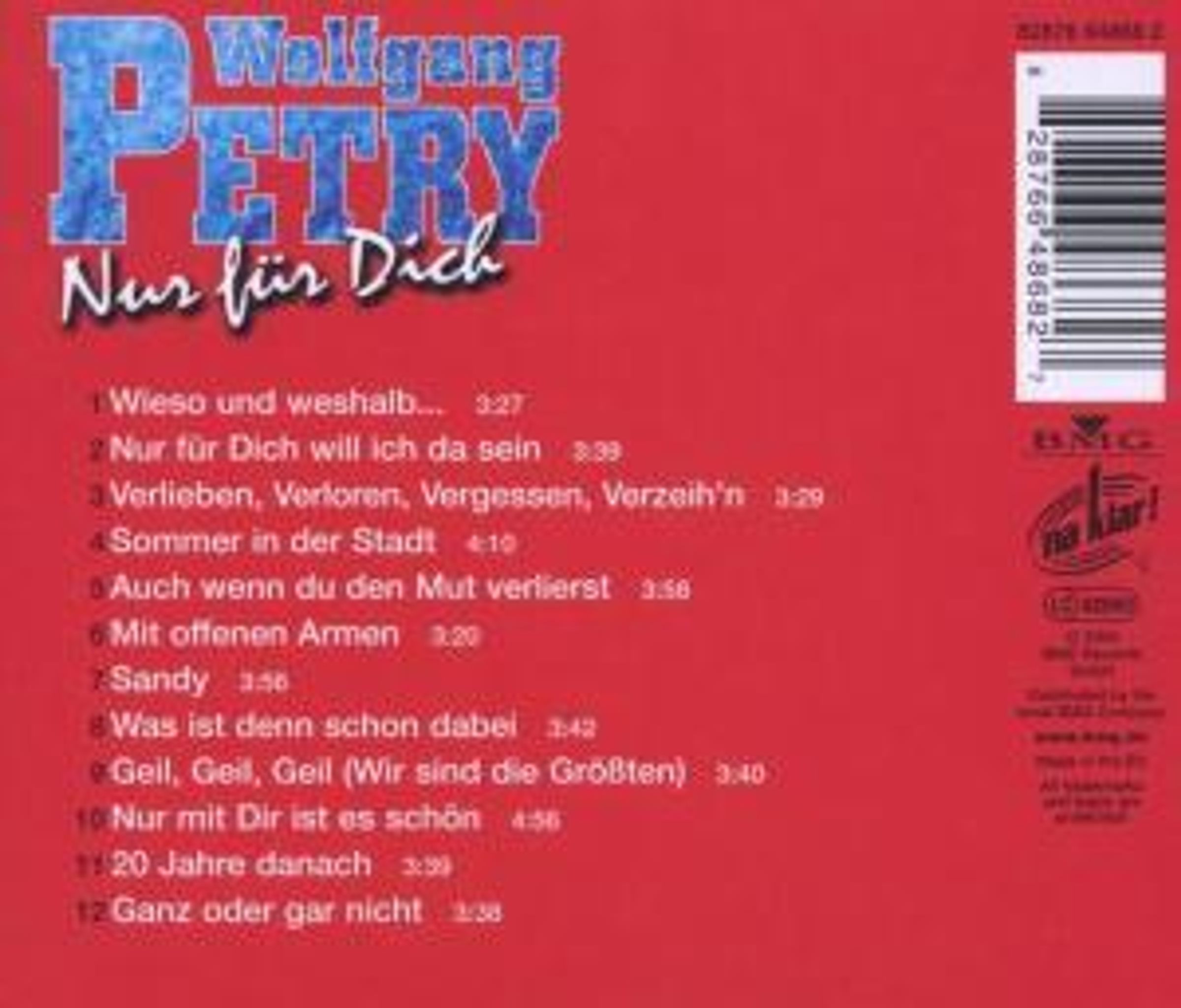 Der Artikel Wolfgang Petry: Nur für dich wurde in den Warenkorb gelegt.