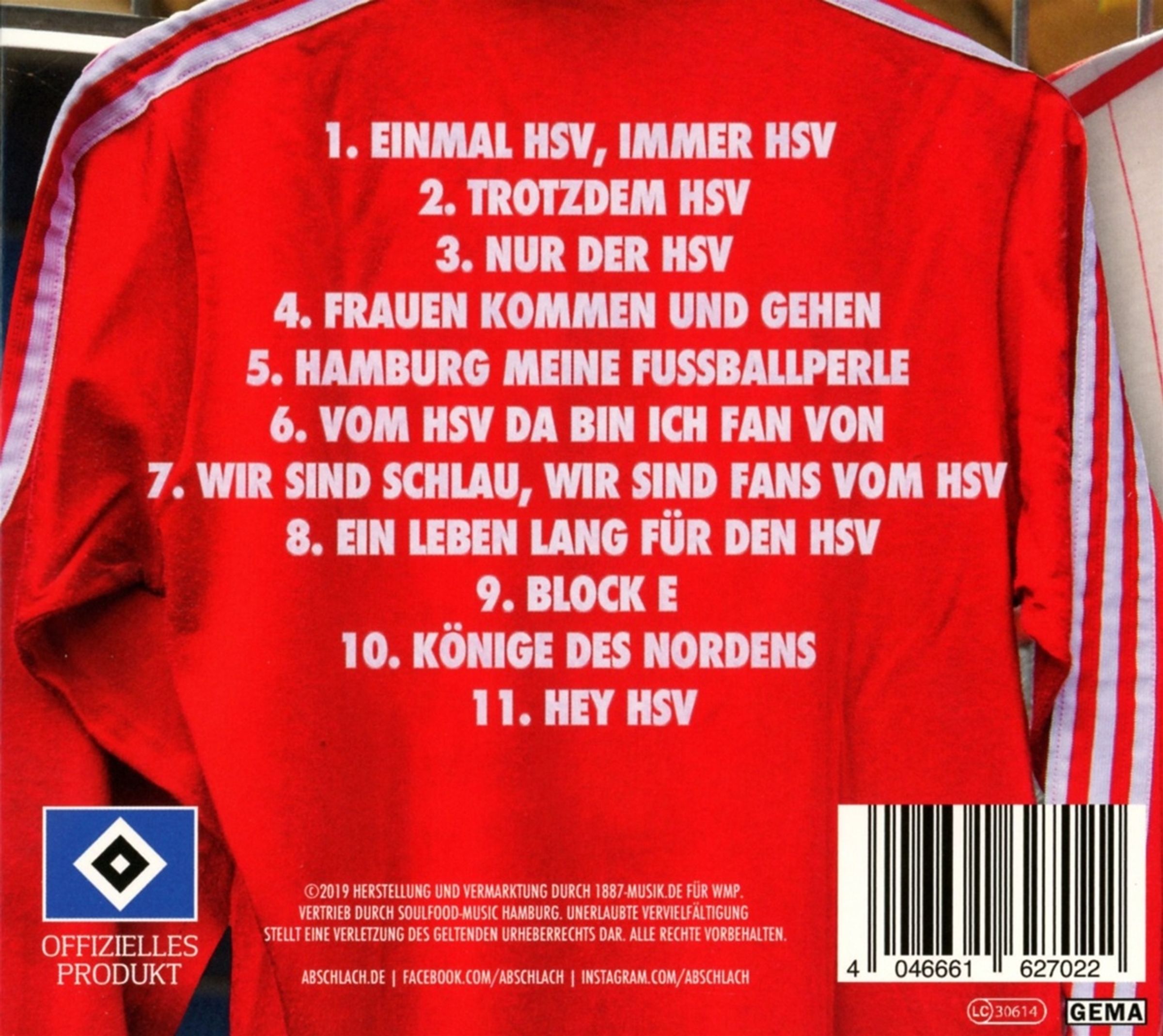 Das erste Cover-Album der sechs Hamburger Fußballrocker trägt bezeichnender Weise den Titel »HSV« und liefert elf Songs, die jeder HSV-Fan kennt und liebt; ja im Schlaf unter der schwarz-weiß-blauen Bettwäsche mitsingen kann.