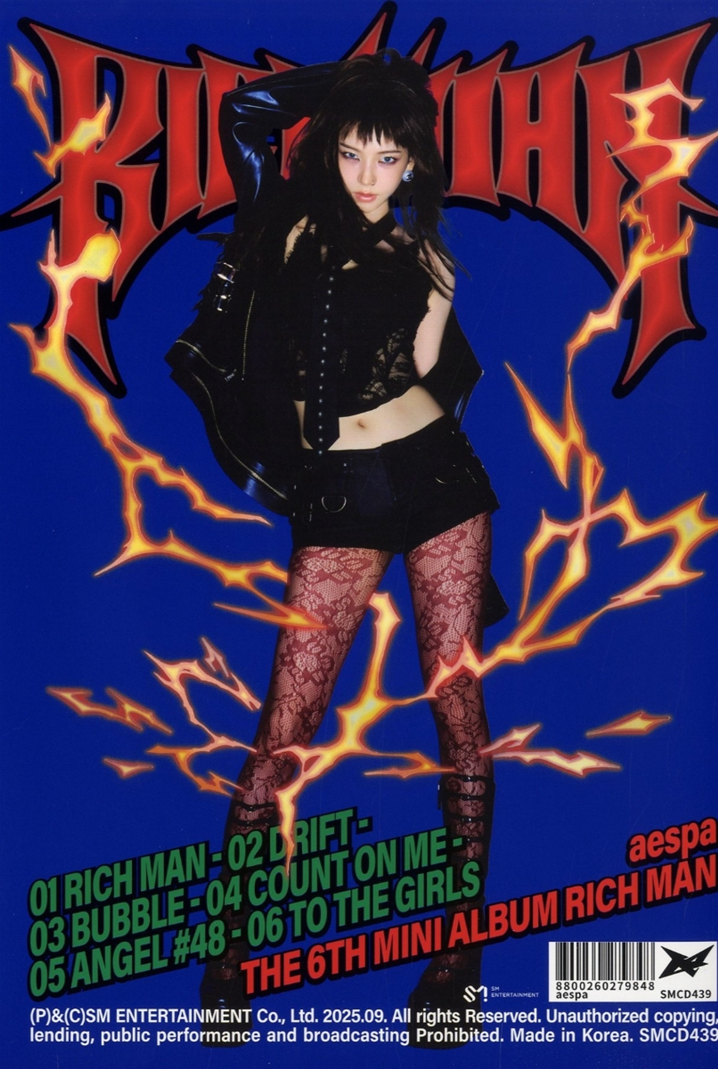 Die K-Pop Gruppe aespa (KARINA, GISELLE, WINTER, NINGNING) ist zurück mit ihrem 6. Minialbum mit dem Titel »Rich Man«. Das Album ist in der Standard (ENERGY = Magazin) Version und in einer kompakteren Digipack (BURST) Version verfügbar.