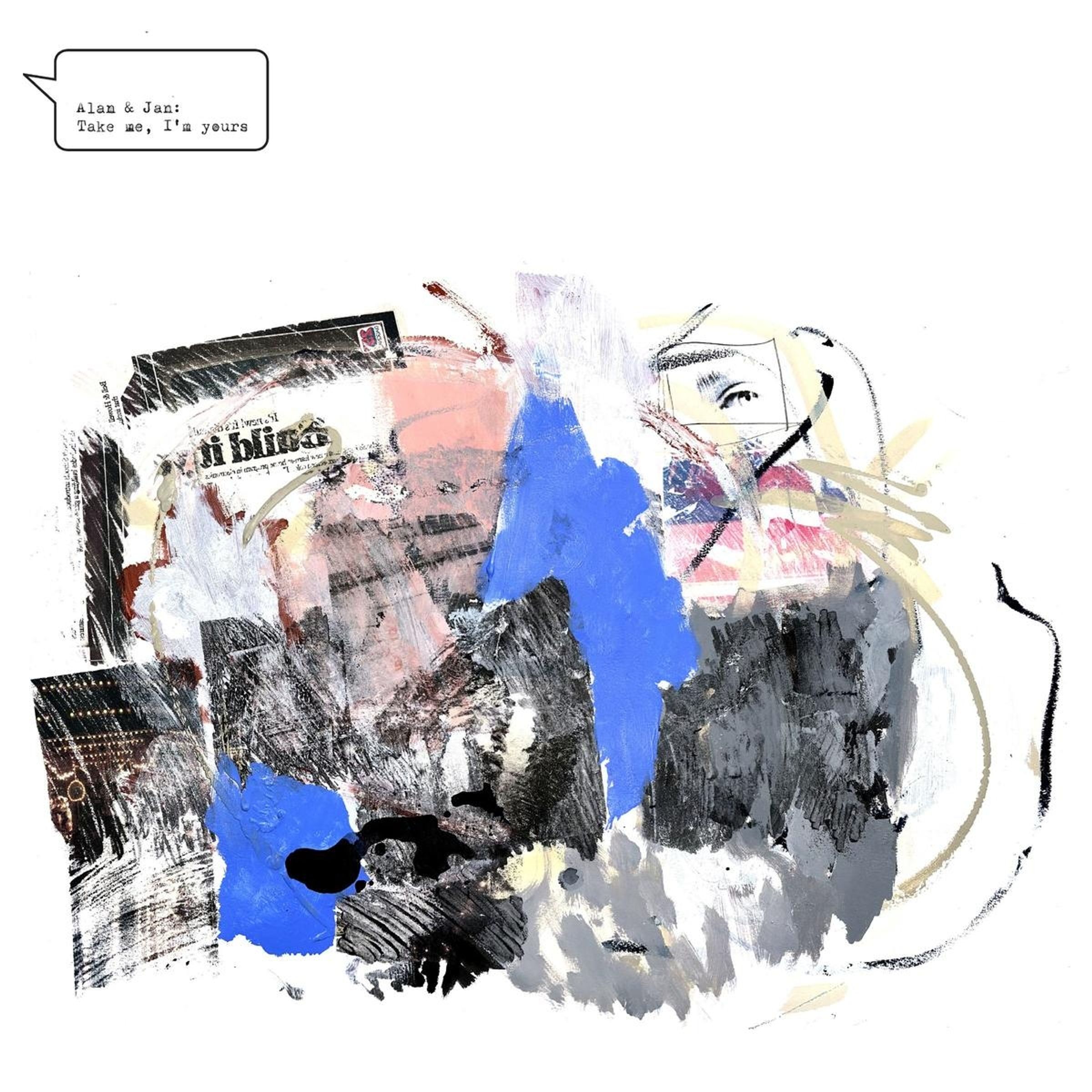 Kollage mit folgenden Texten: "Alan & Jan: Take me, I’m yours" und "blues". Abstrakte Farben und Formen., LP
