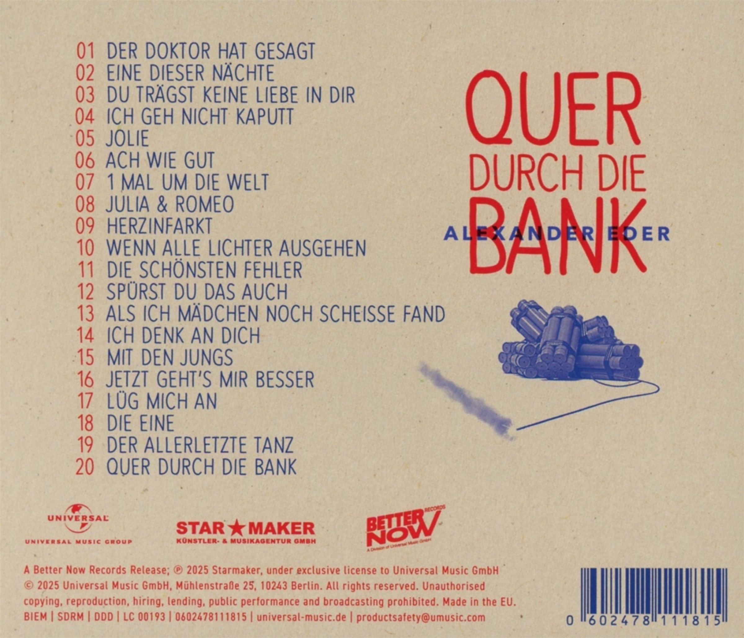 Alexander Eder kehrt nach zwei Jahren mit seinem dritten Studioalbum »Quer durch die Bank« zurück! In den sozialen Medien machte er mit viralen Videos, emotionalen Songs und unterhaltsamen Clips auf sich aufmerksam und versammelt mit über 4 Millionen Followern eine unglaublich große Fangemeinde hinter sich.