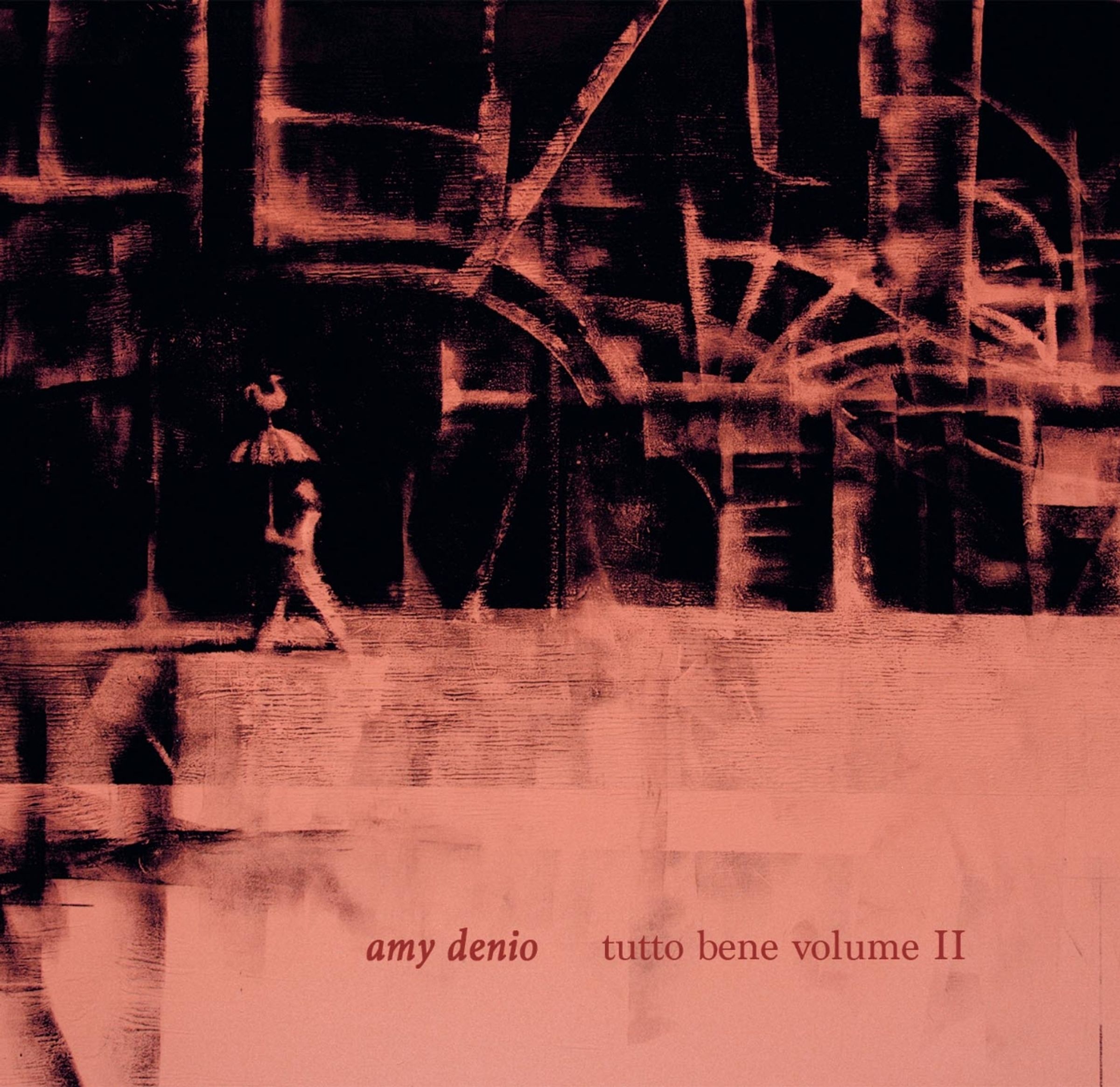Text: "amy denio tutto bene volume II". Illustration: Abstrakte Formen und eine schemenhafte Figur, alles in Rot- und Schwarztönen., CD