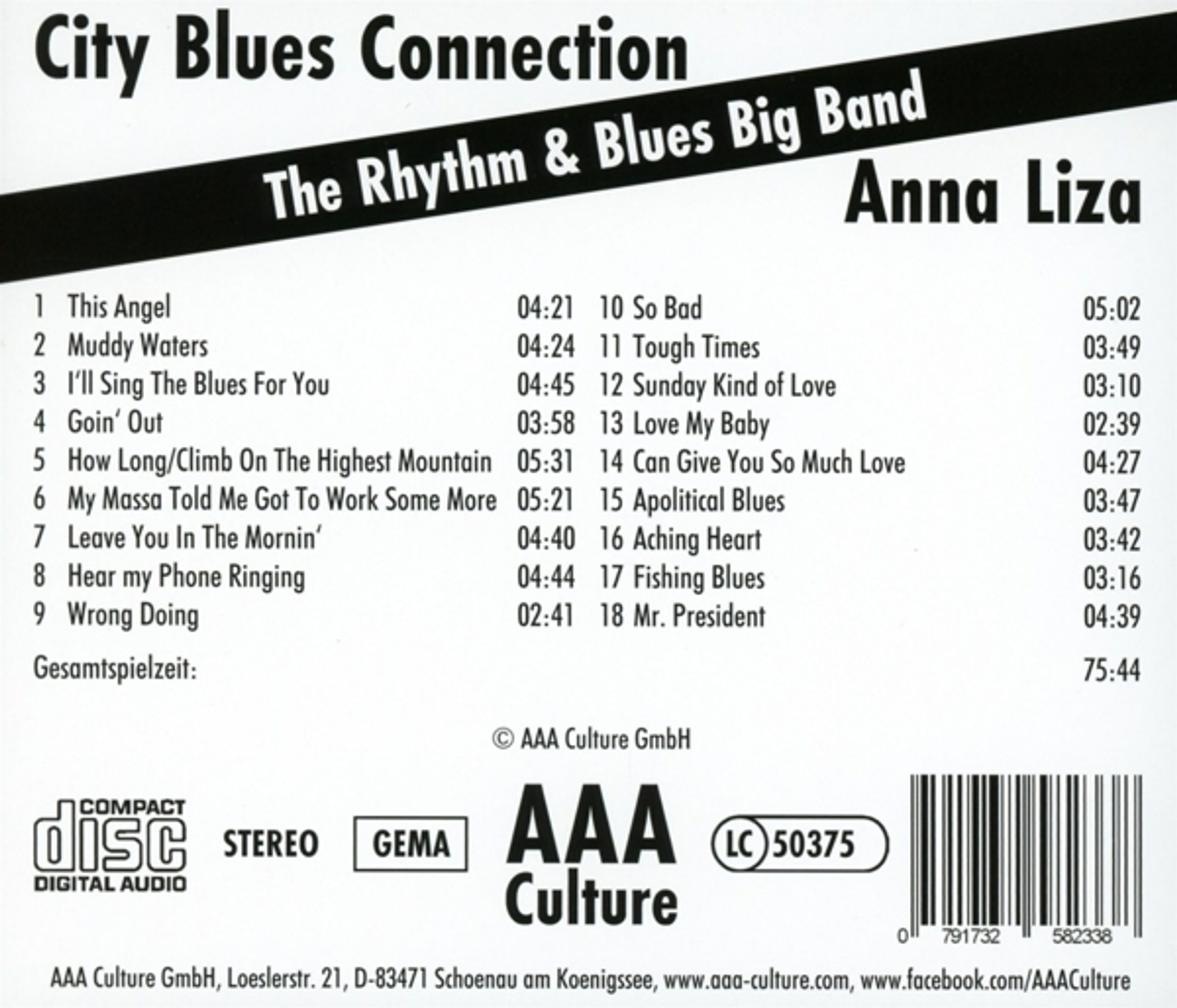 Mit der neuen CD »Anna Liza« bietet City Blues Connection – The Rhythm & Blues Big Band eine auf vielerlei Arten ungewöhnliche Blues-Produktion: Von der – zusammen mit den beiden Gastmusikern – über 20-köpfigen Besetzung wird hier außergewöhnlich vielseitiger Blues geboten.