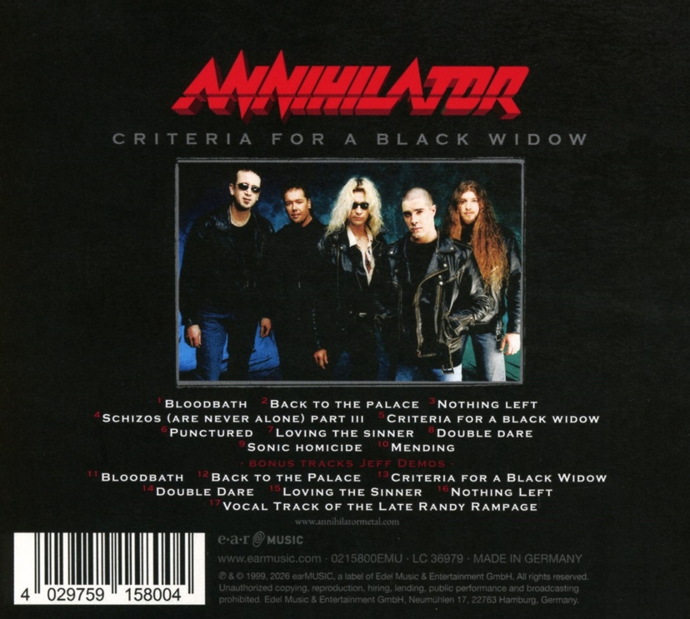 Annihilator: Criteria For A Black Widow (CD Digipak)