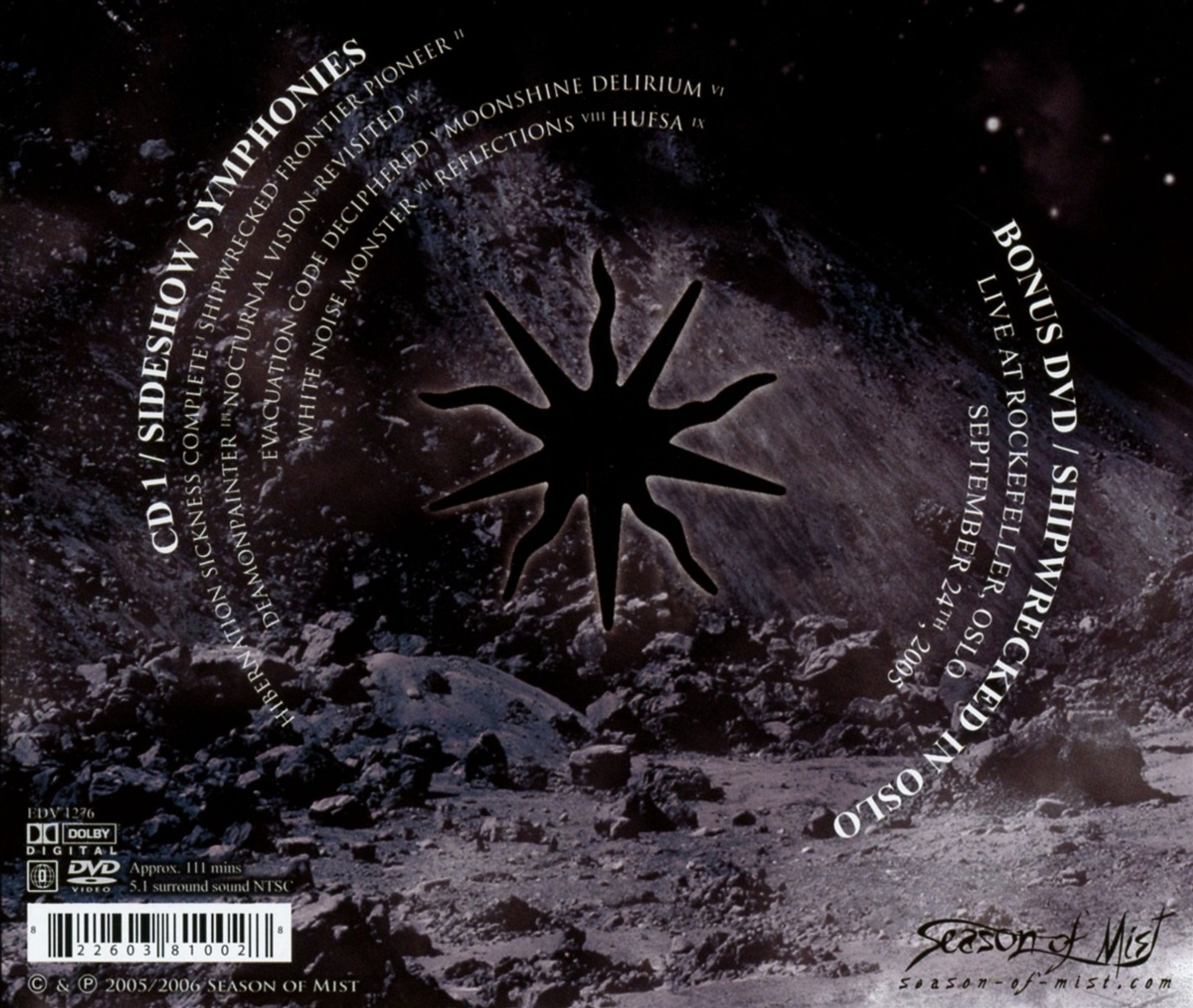 Double jewel case with ›Sideshow Symphonies‹ on CD and ›Shipwrecked in Oslo‹ on DVD. Comes with 20 page booklet. Originally thought of as simply a black metal super group, Norway's Arcturus, had the guts to incorporate traditional melody, keyboards, vocal experimental and melodrama into their sinister theatrics. With this fourth album originally released in 2005, they became the premiere progressive, avantgarde art band.