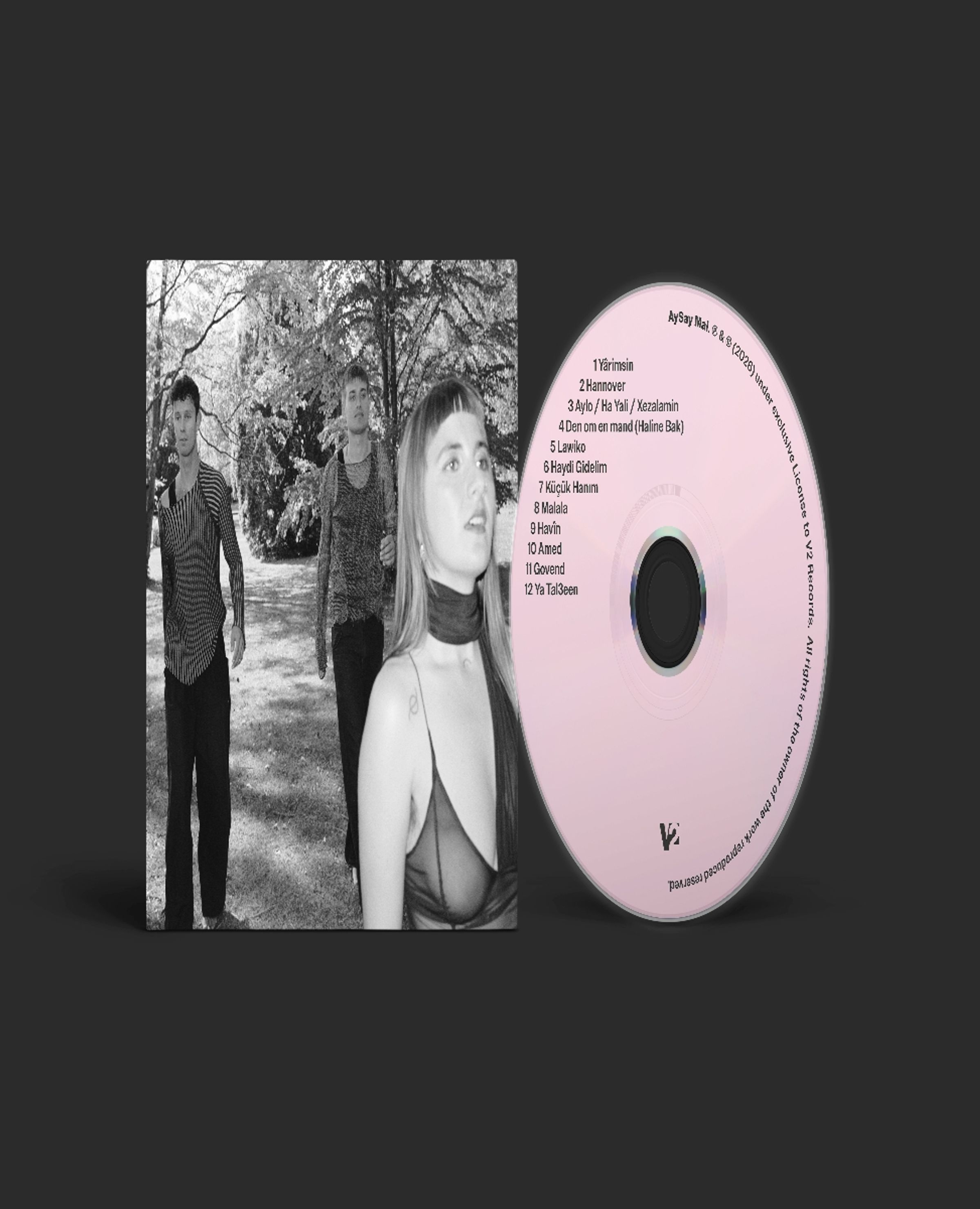 Malala, AySay. Drei Personen im Freien, eine Frau im Vordergrund, zwei Männer im Hintergrund auf einer von Bäumen gesäumten Wiese., CD
