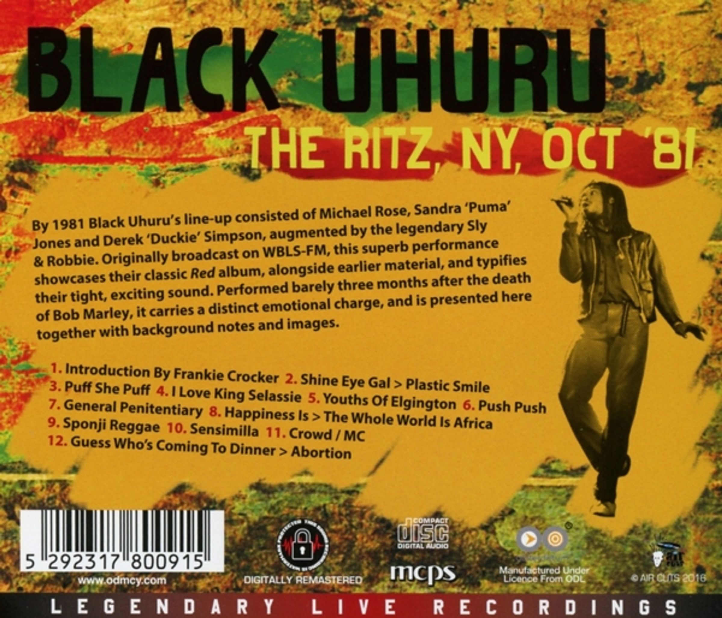 By 1981 Black Uhuru's line-up consisted of Michael Rose, Sandra ›Puma‹ Jones and Derek ›Duckie‹ Simpson, augmented by the legendary Sly & Robbie. Originally broadcast on WBLS-FM, this superb performance showcases their classic ›Red‹ album, alongside earlier material, and typifies their tight, exciting sound. Performed barely three months after the death of Bob Marley, it carries a distinct emotional charge, and is presented here together with background notes and images.