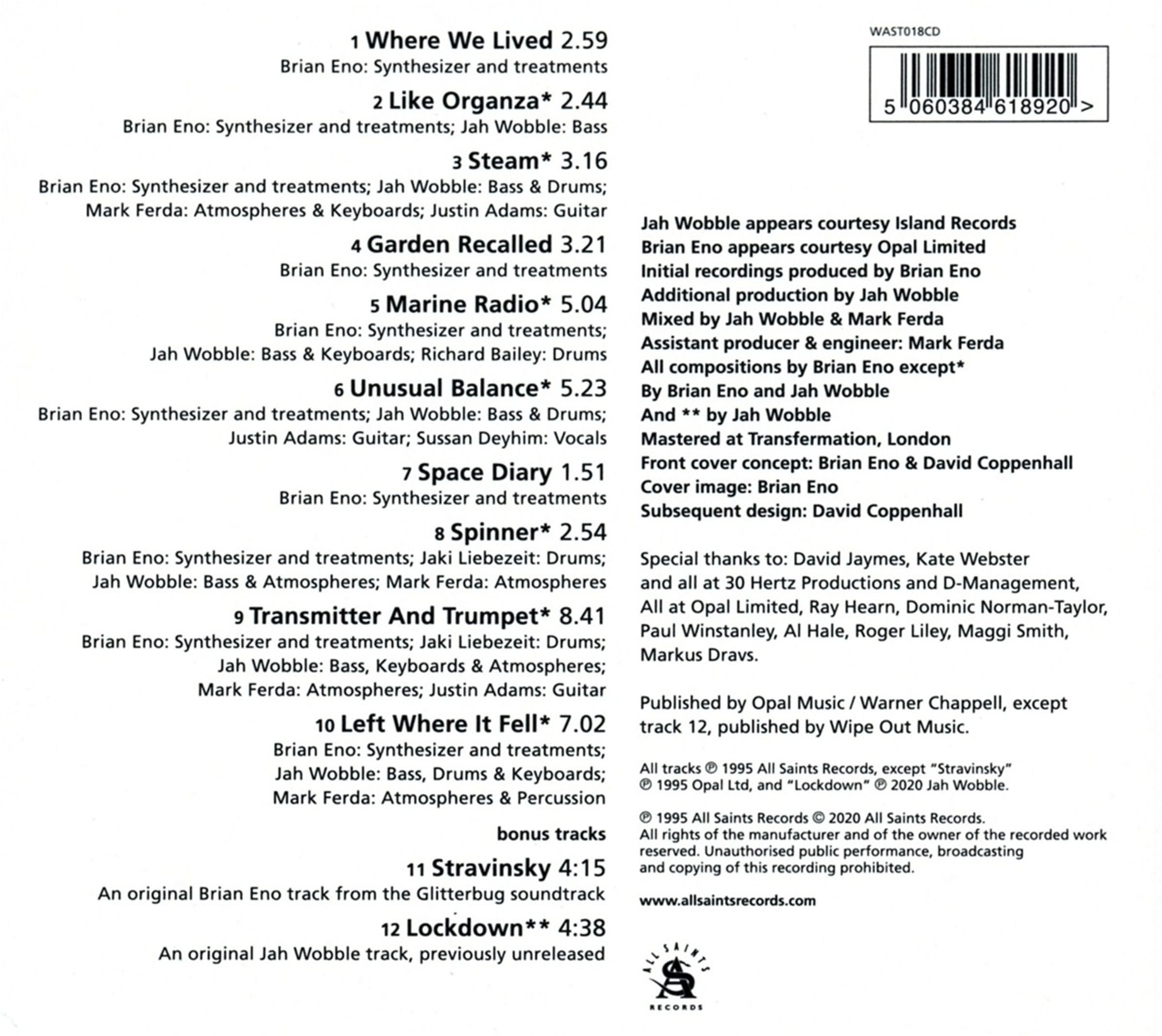 Brian Eno & Jah Wobble: Spinner (Expanded CD) (Reissue)