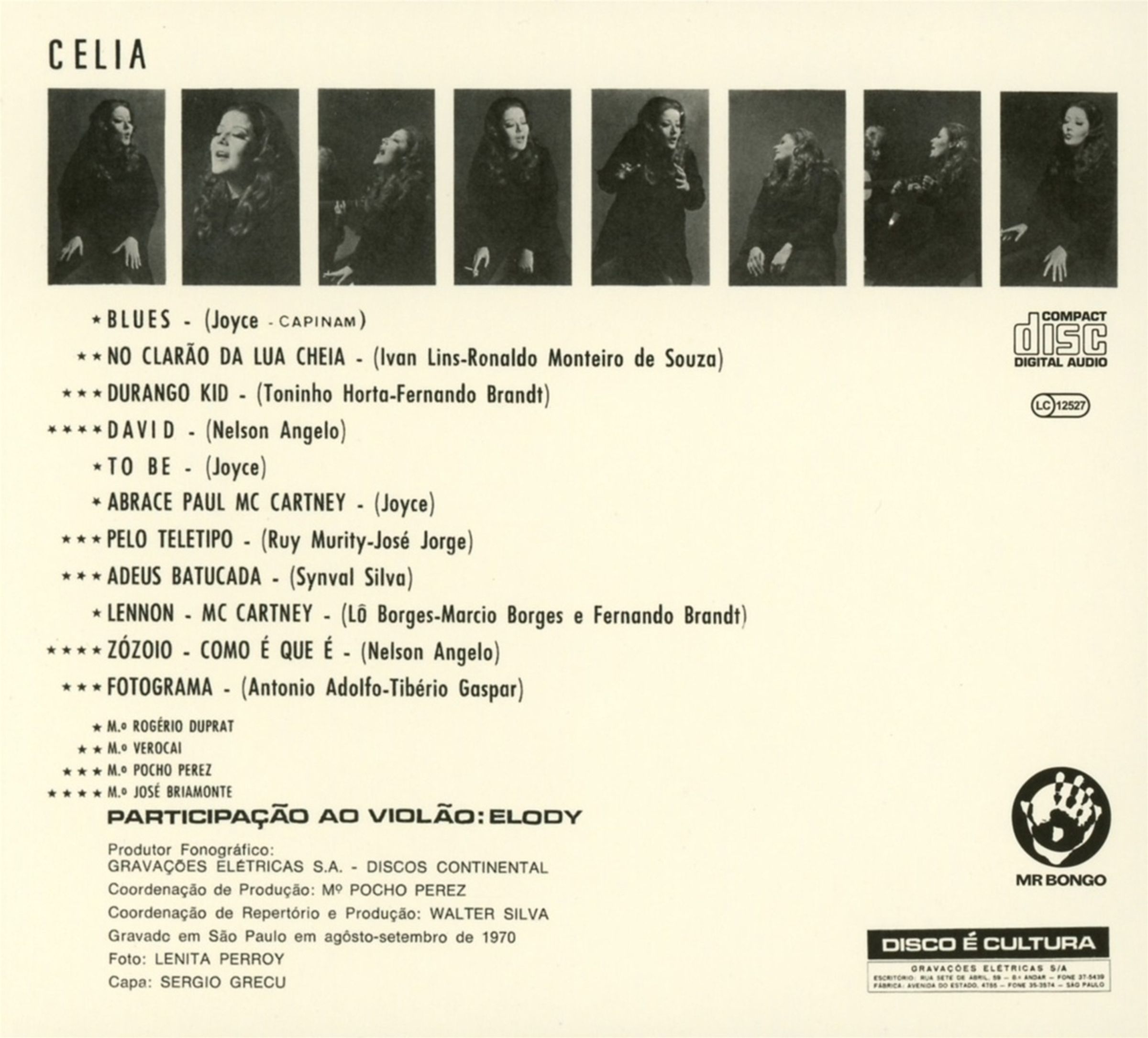 Celia war eine brasilianische Sängerin, die in ihren frühen Jahren häufig mit dem Meisterarrangeur und Komponisten Arthur Verocai zusammenarbeitete und im Laufe ihrer umfangreichen Karriere mit vielen anderen Größen zusammenarbeitete.