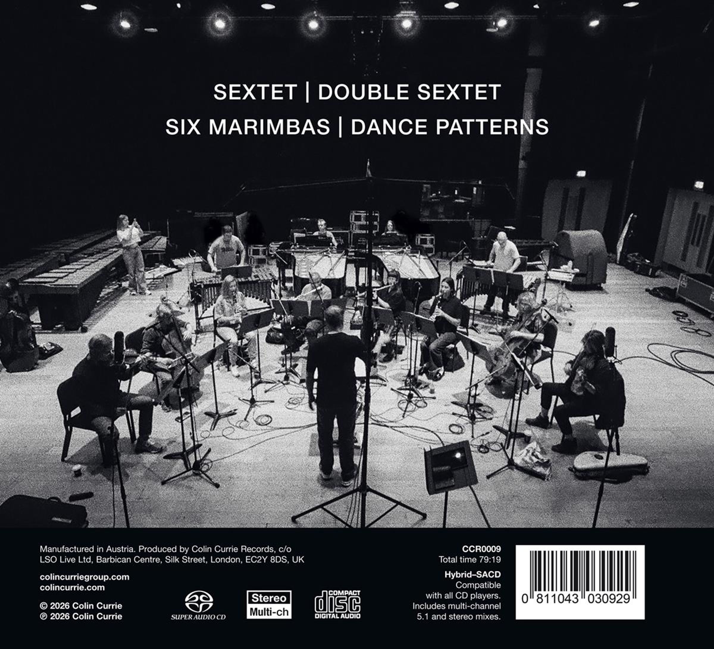 Anlässlich des 90. Geburtstags von Steve Reich im Oktober 2026 und des 20-jährigen Jubiläums der Colin Currie Group, vereint diese wegweisende Veröffentlichung eine Reihe von Reichs ikonischen Werken. Verbunden durch die elegante Symmetrie des Sextetts, zeigen diese Stücke die rhythmische Vitalität, harmonische Klarheit und emotionale Tiefe, die Reichs Musik seit Generationen auszeichnen. Von den funkelnden Texturen des Sextetts über die treibende Kraft und Eindringlichkeit des Double Sextetts bis hin zu den hypnotischen, zeitverzerrenden Klängen von Six Marimbas, bietet das Album eine Reise durch Reichs unvergleichliche Klangwelt.
