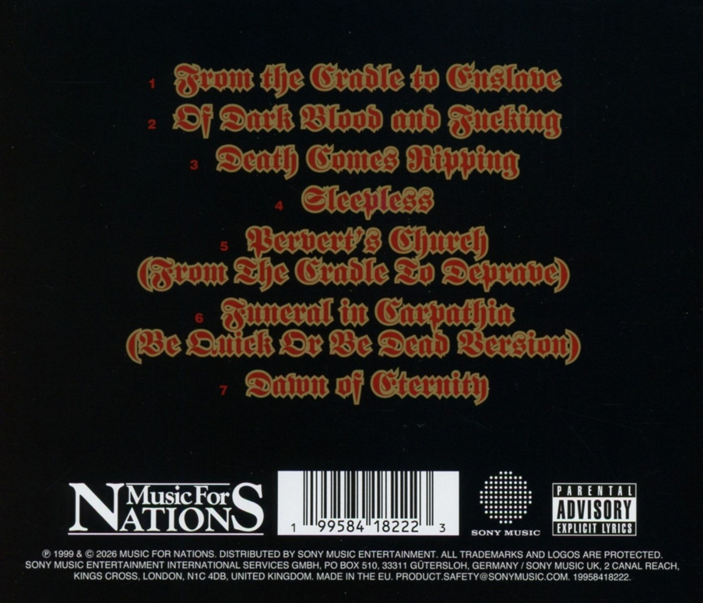 Mit seiner ursprünglichen Veröffentlichung im Jahr 1999 bot Cradle To Enslave, die zweite EP der Band, einen Momentaufnahme davon, wie Cradle Of Filth begonnen haben, ihre klanglichen Markenzeichen zu schärfen und auszubauen. Elemente, die später den gleichnamigen Sound eines bahnbrechenden Genres prägen sollten. Eine Sammlung von Tracks, die zugleich intensiv und theatralisch wirken, getragen von schweren, treibenden Riffs, weitreichenden orchestralen Akzenten und dem unverwechselbaren Fauchen von Frontmann Dani Filth.