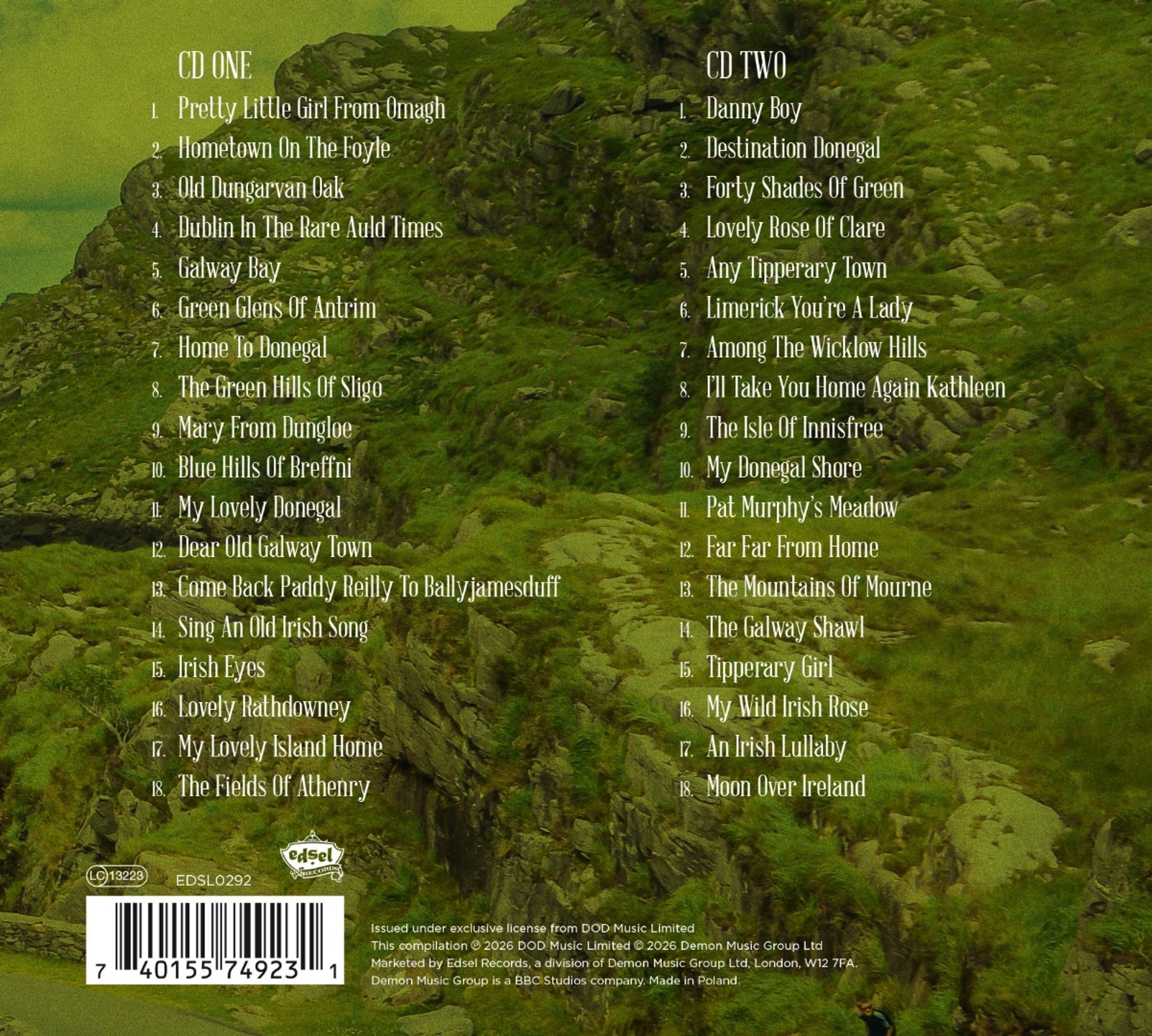 "DANIEL O'DONNELL Danny Boy". Ein Mann vor einer grünen, bergigen Landschaft. 36 Lieblingslieder aus Irland., 2 CDs