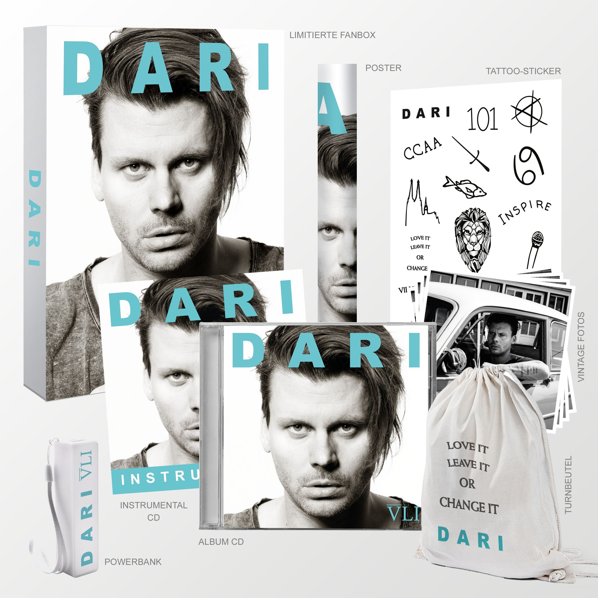DARI möchte jedoch überall gehört werden, das hat er sich so in den Kopf gesetzt, und jetzt geht er konsequent Schritt für Schritt ans Ziel. 2016 war ein wichtiges Jahr in seiner Karriere. Er brachte bei The Voice of Germany die Stühle zum Rotieren, als Opener für PUR spielte er im Sommer riesige Open- Airs, für Adel Tawil komponierte er den Hit »Flutlicht« und spielte mit seinem Gitarristen im Duo oder seiner Band deutschlandweit, wo immer sich eine Gelegenheit ergab, egal ob Straßenmusik oder Charity-Event. Das bisschen Freizeit was ihm blieb, steckte er unermüdlich in seine Musik.