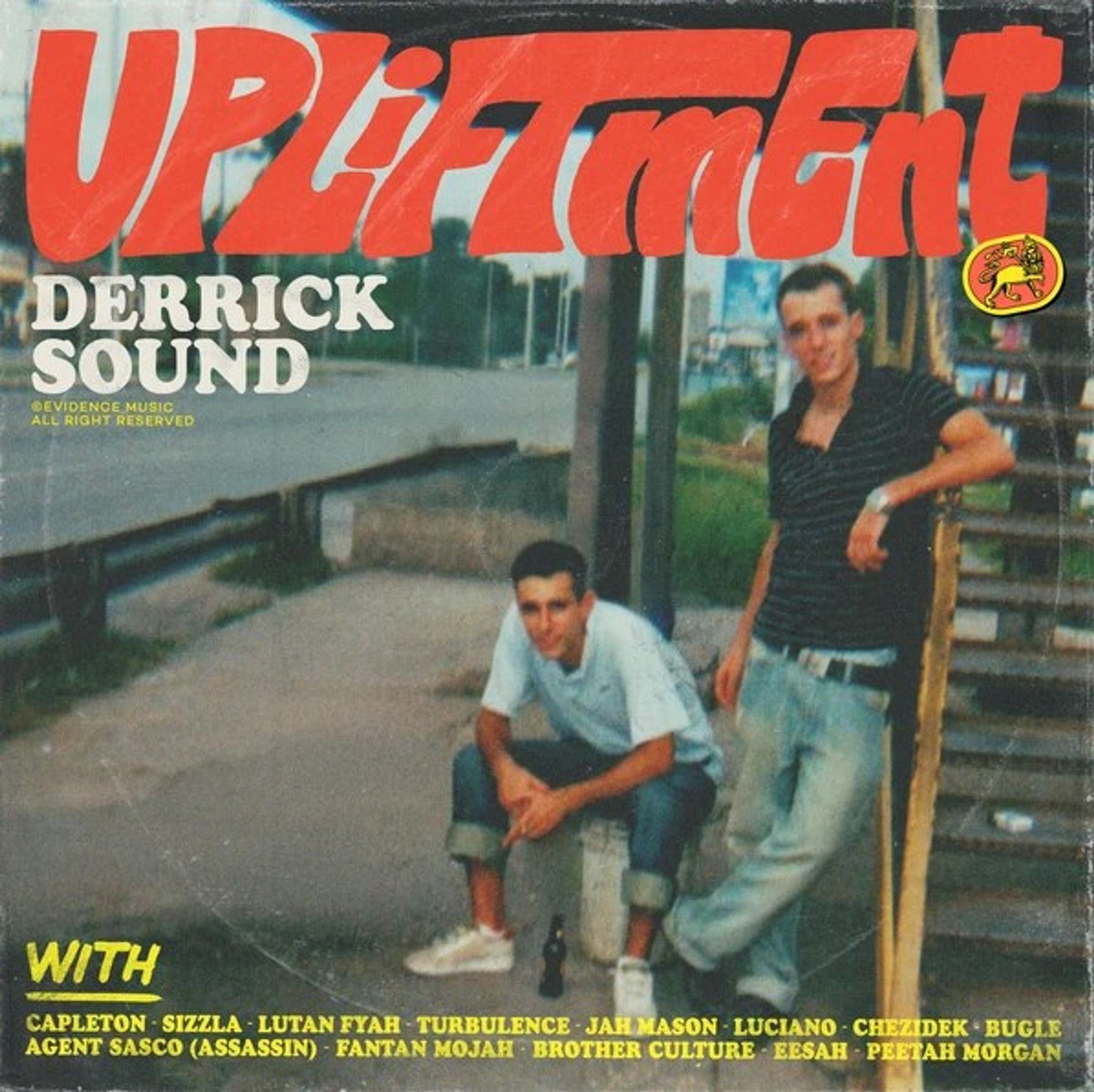 "UPLiFTment", "DERRICK SOUND", "WITH", gefolgt von einer Liste von Künstlernamen. Zwei Personen neben einer Straße., LP