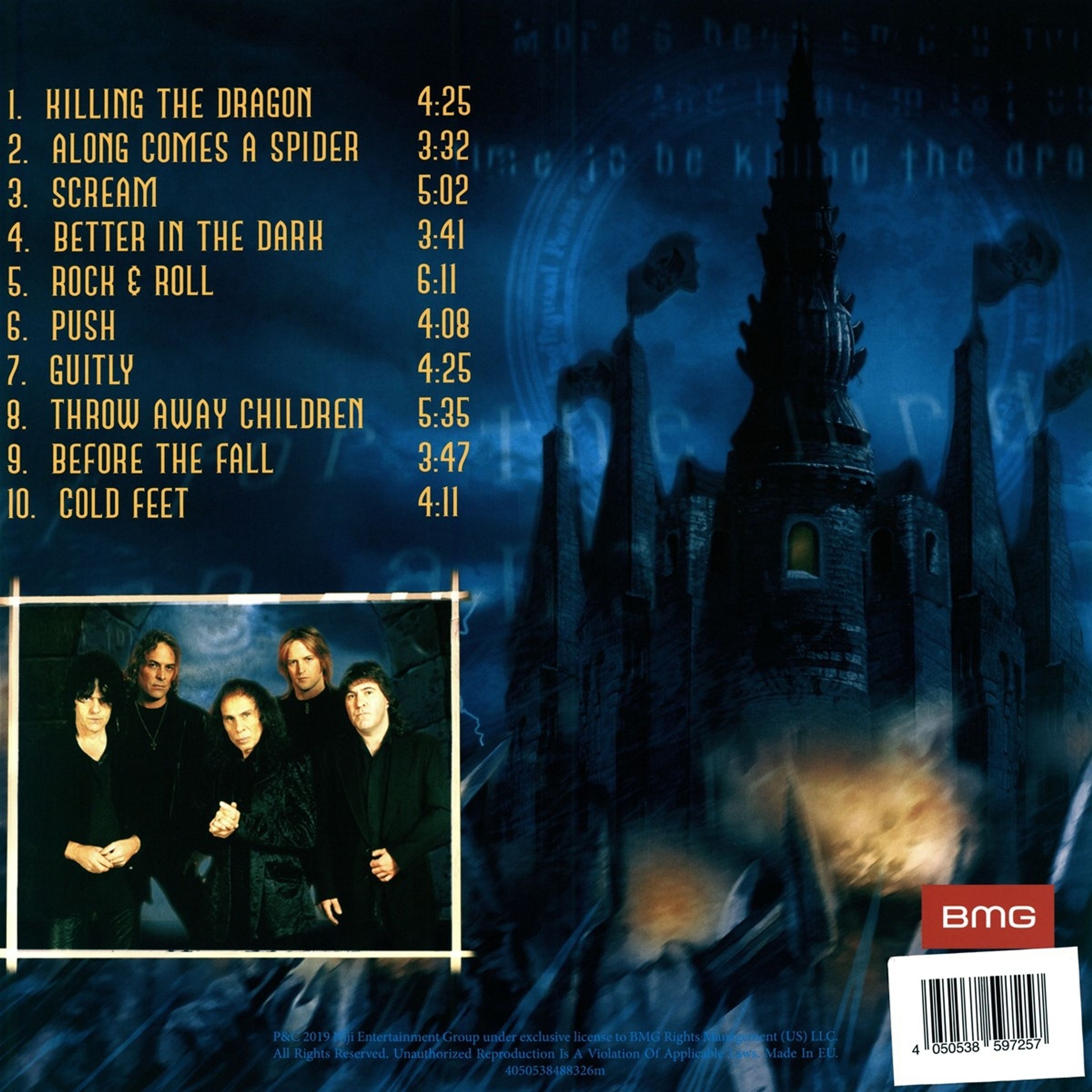 Ursprünglich im Jahr 2002 von Ronnie James Dio (Gesang), Doug Aldrich (Gitarren), Jimmy Bain (Bass) und Simon Wright (Schlagzeug) veröffentlicht, und lange auf Vinyl nicht verfügbar gewesen, erscheint nun die 180-Gramm-Vinyl von Killing The Dragon mit Original-Tracklisting.