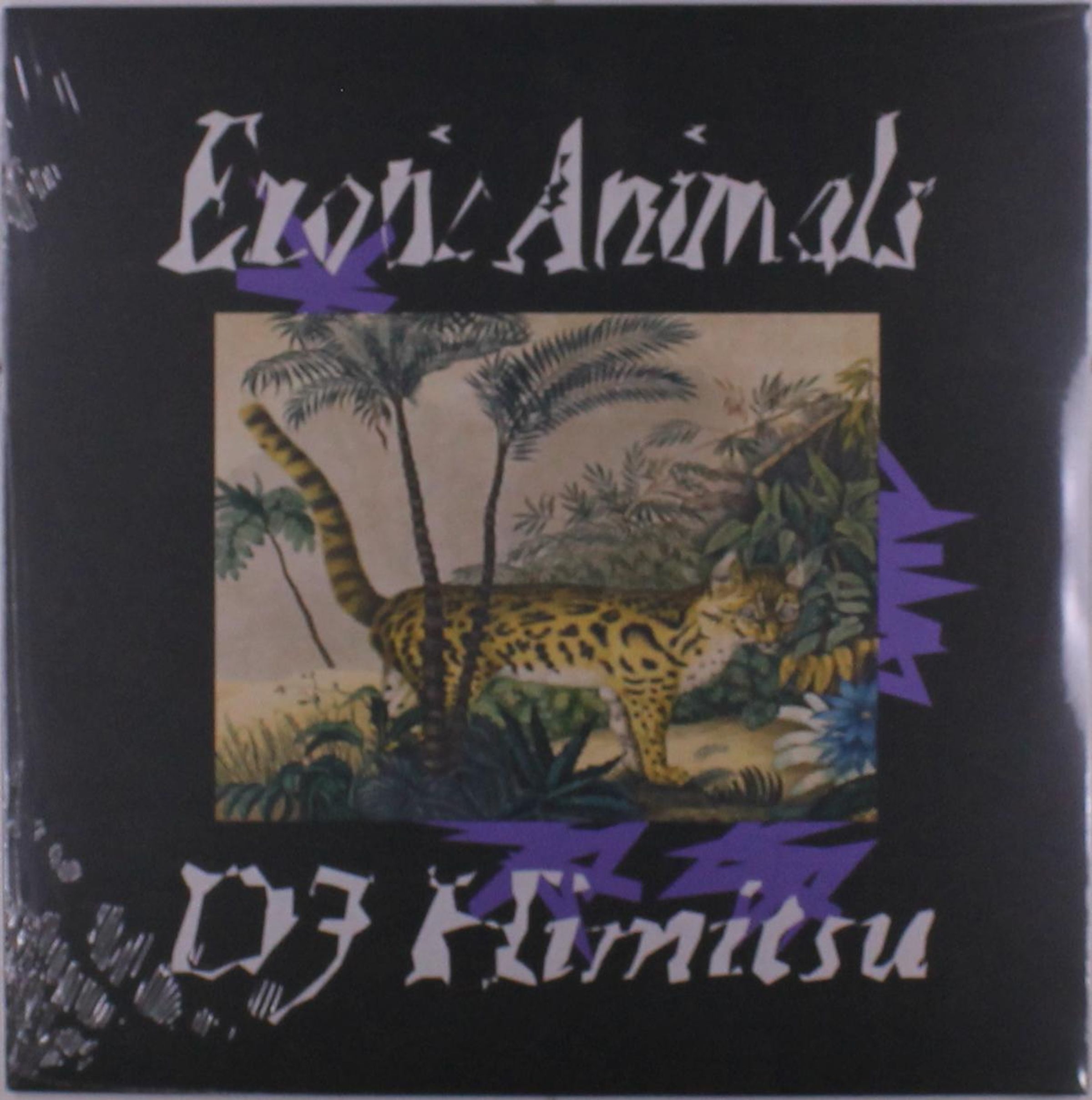 Text: "Exotic Animals, DJ Kimitsu." Illustration eines exotischen Tieres in einer tropischen Landschaft., LP