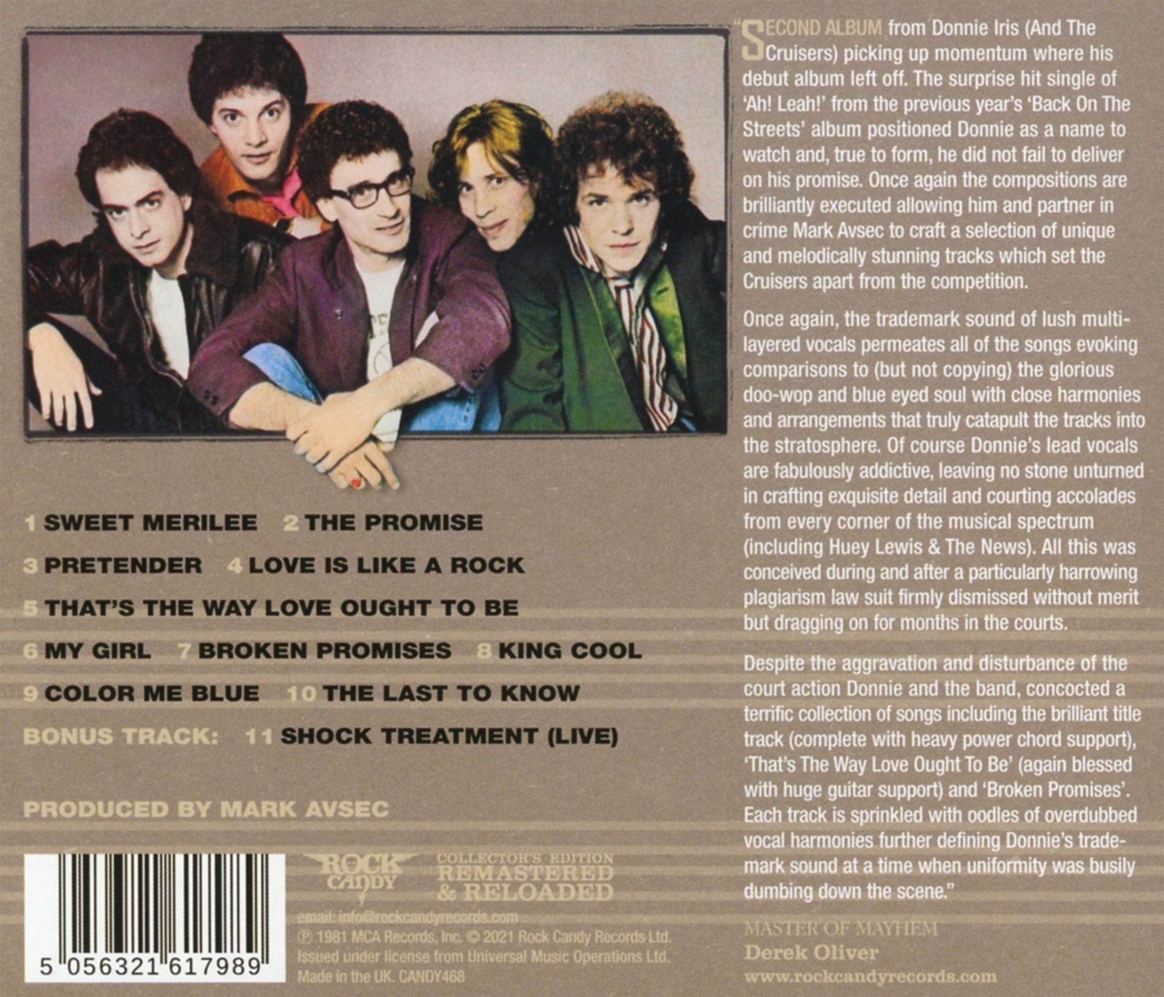 Donnie Iris schrieb 1970 mit den Jaggerz den #2 Billboard-Hit ›The Rapper‹ und war Mitglied von Wild Cherry, nachdem die Gruppe mit ›Play That Funky Music‹ einen #1-Hit hatte. Auch als Solokünstler wurde er Anfang der 1980er Jahre mit dem Hit ›Ah! Leah!‹ oder der Nummer ›Love Is Like a Rock‹ ein Fixpunkt im US-AOR und Powerpop. Das Nachfolgealbum ›King Cool‹, das Donnie Iris and the Cruisers zugeschrieben wird, wurde im August 1981 veröffentlicht und brachte der Band weitere AOR-Erfolge ein, wobei ›Love Is Like A Rock‹ Platz 9 der Billboard-Top-Tracks-Charts erreichte. Zwei weitere Songs des Albums erhielten ein bedeutendes AOR-Airplay: ›My Girl‹ und ›Sweet Merilee‹. Außerdem erhielt er von diesem Album im späteren Teil seiner Karriere den Spitznamen King Cool.