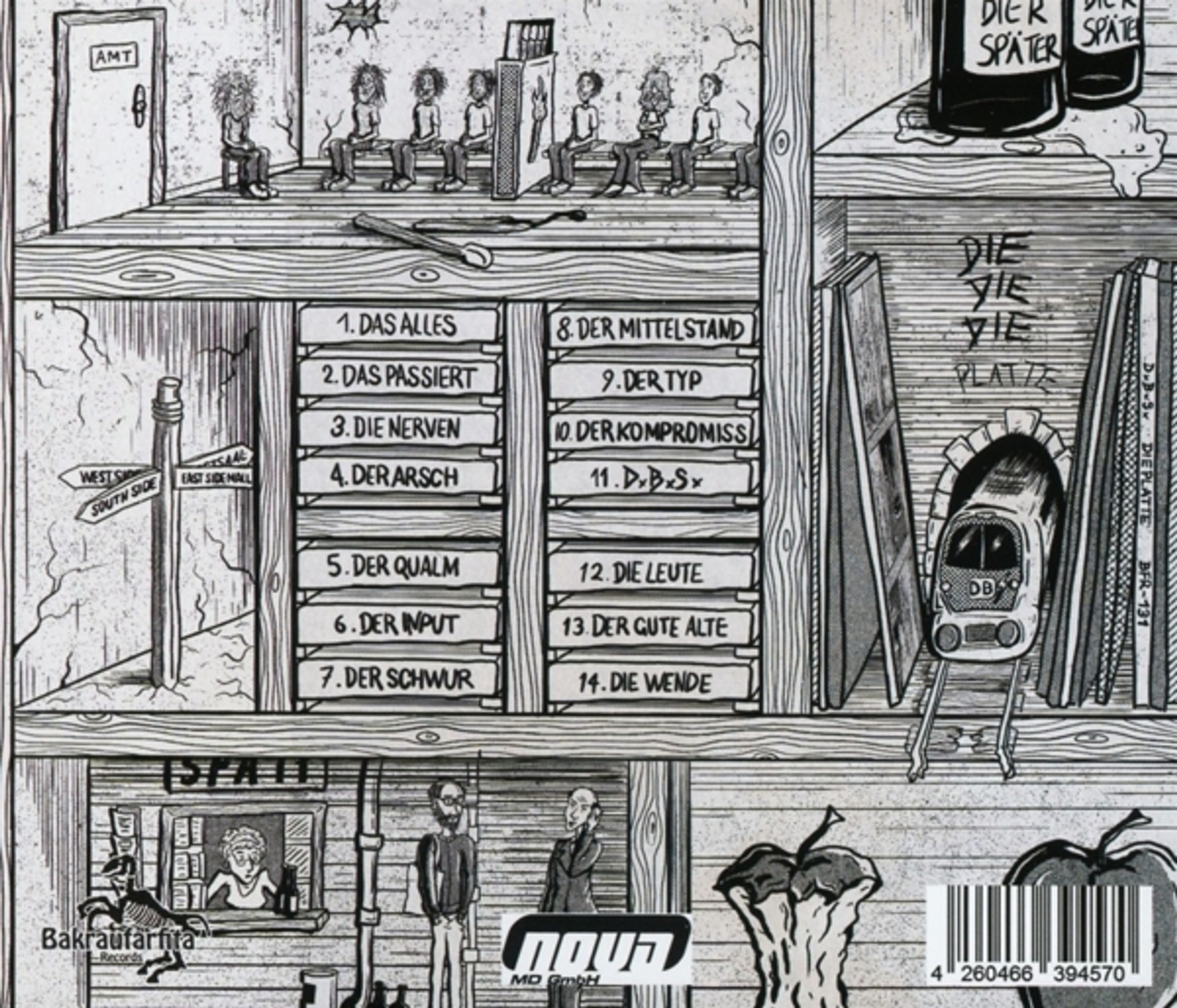 Der bisherige Höhepunkt der Diskografie besticht durch ein handgezeichnetes Coverartwork von STEVE BURNER, das je nach Tonträgerformat betitelt ist („Die CD“, „Der Download“ etc.). Die Band bewirtschaftet mit dem gut 48 Minuten langen Epos ihr ganz eigenes Feld: deutschsprachiger Garage / Punkrock mit üppiger Schlagseite zu rifflastigen und staubtrockenen Hard- und Stonerrock-Gefilden, als träfen AC/DC auf die STOOGES und hätten sogar noch TON STEINE SCHERBEN dabei im Sinn. Mit Schlagzeug, Bass Gitarre und Gesang werden 14 sehr energiegeladene und urwüchsige Songs in Szene gesetzt, die programmatisch kurze Titel tragen. Diese Band klingt tatsächlich wie keine andere momentan.