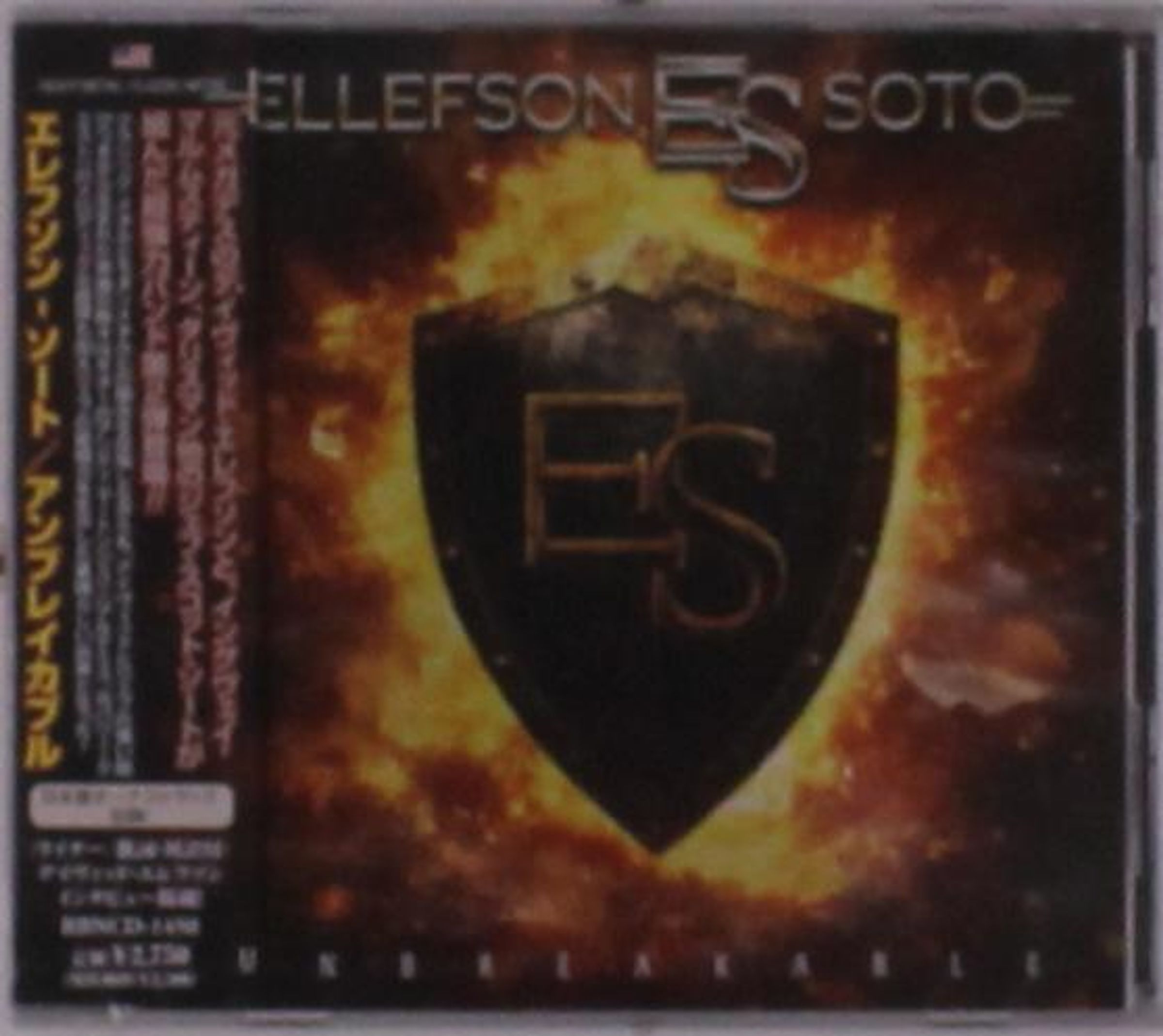 Text: "ELLEFSON SOTO", "UNBREAKABLE". Ein Schild mit "ES" vor feurigem Hintergrund., CD
