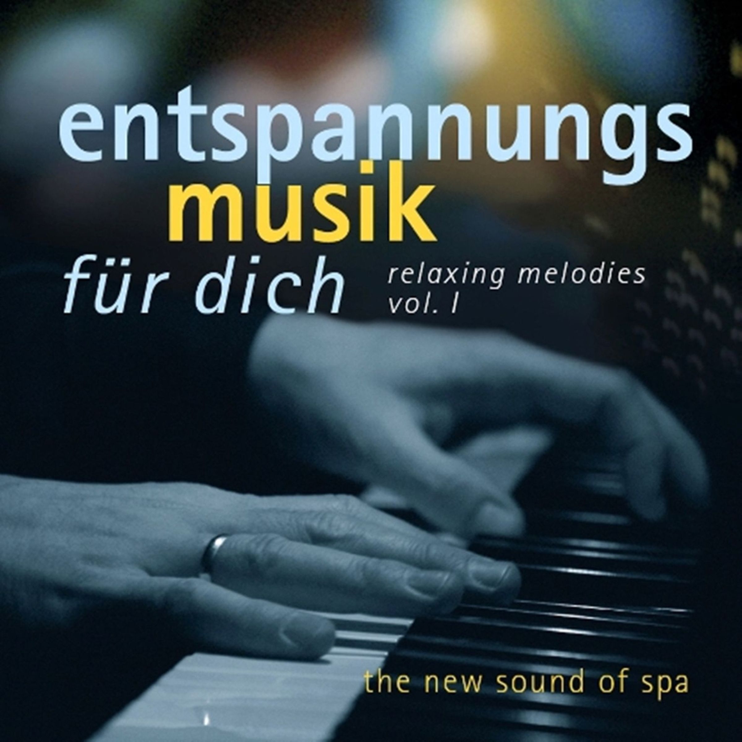 Texte: "entspannungsmusik für dich", "relaxing melodies vol. 1", "the new sound of spa". Hände auf Klaviertasten., CD