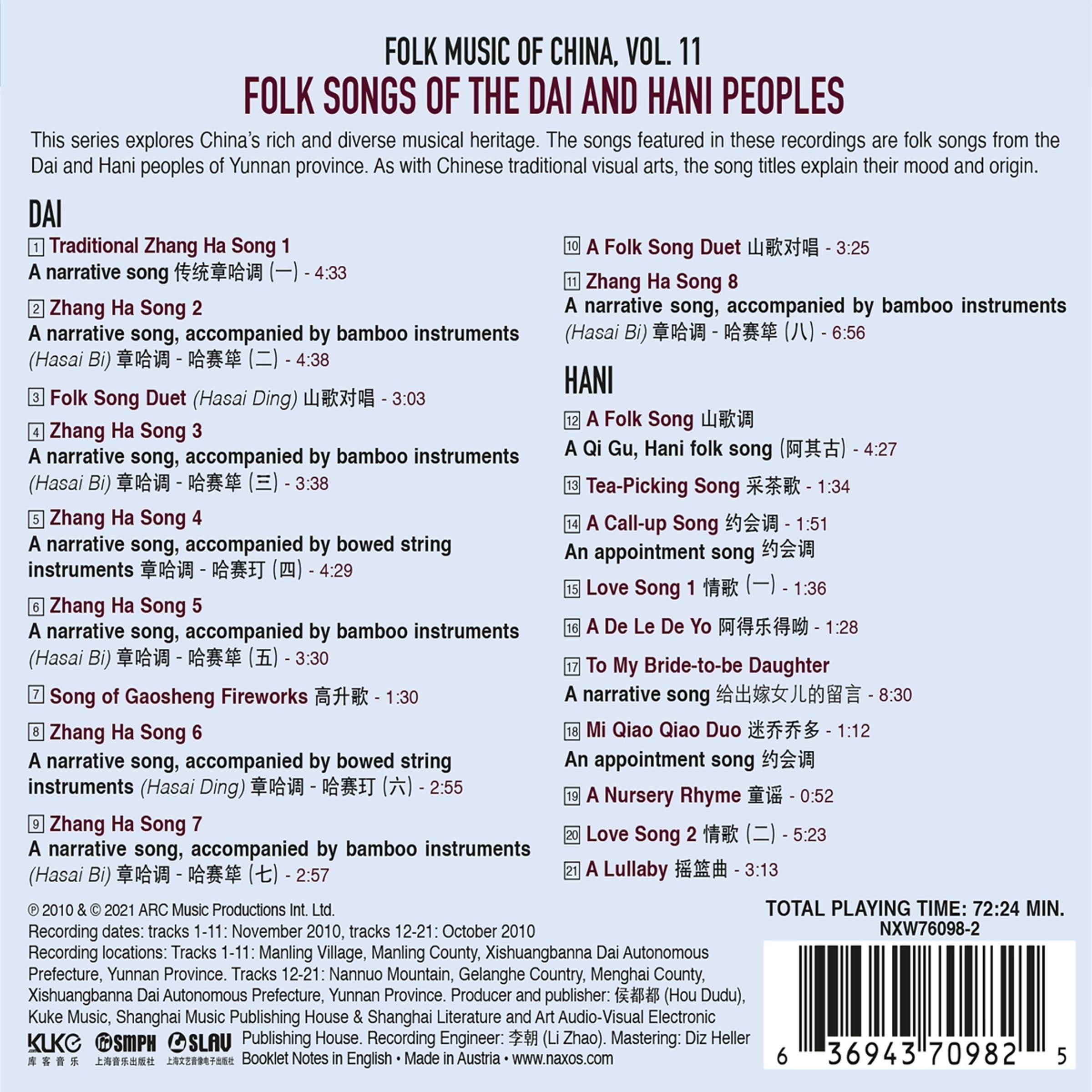 Folk Music Of China Vol.11: Folk Songs Of The Dai And Hani Peoples