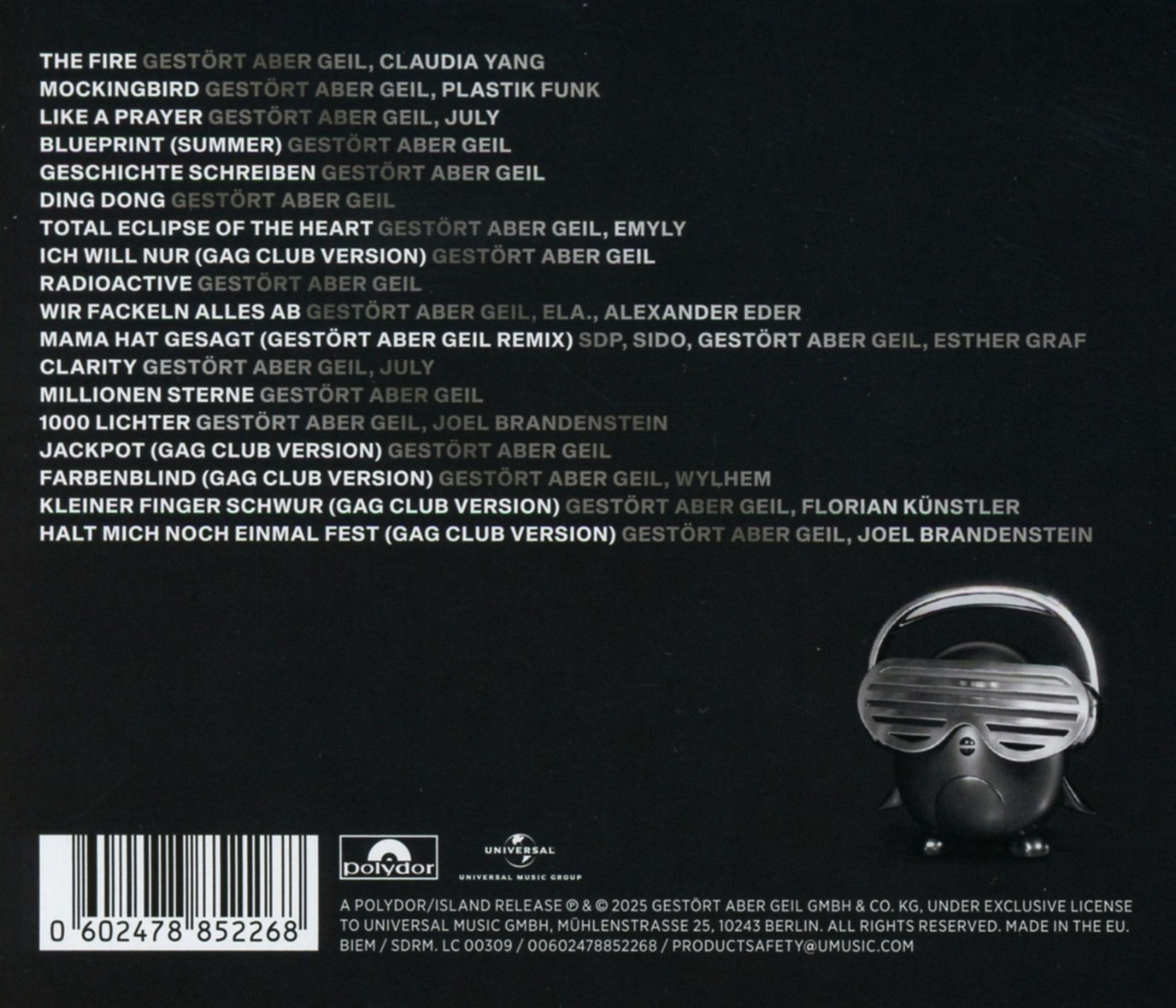 Ob clubtaugliche Beats, eingängige Hooks oder gefühlvolle Vocals – das Album zeigt Gestört aber GeiL in Bestform und schlägt zugleich auch immer neue aktuelle klangliche Wege ein. Die 18 Titel erzählen Geschichten von Liebe, Sehnsucht, Freiheit und Hoffnung – Themen, die das Duo seit jeher mit einem feinen Gespür für Atmosphäre und Timing in tanzbare Songs verwandelt.