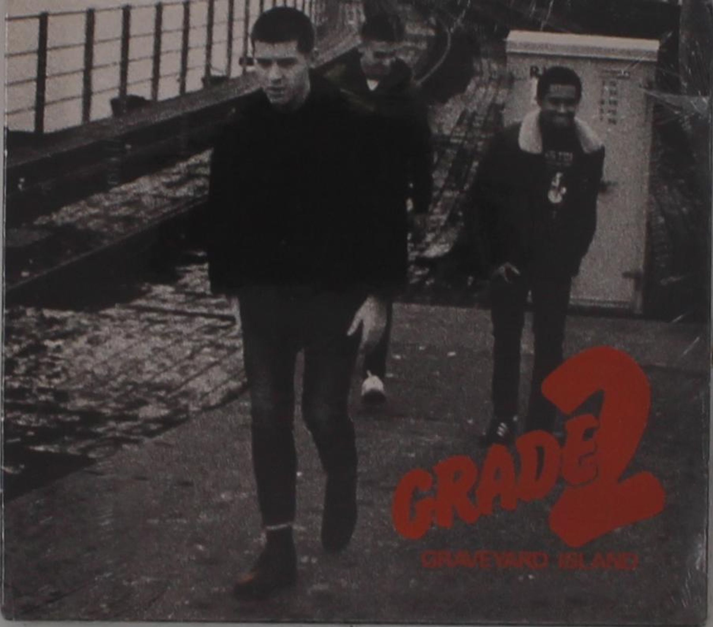 „GRADE 2 GRAVEYARD ISLAND“ steht in roter Schrift. Drei Personen gehen nebeneinander auf einem Gehweg entlang., CD