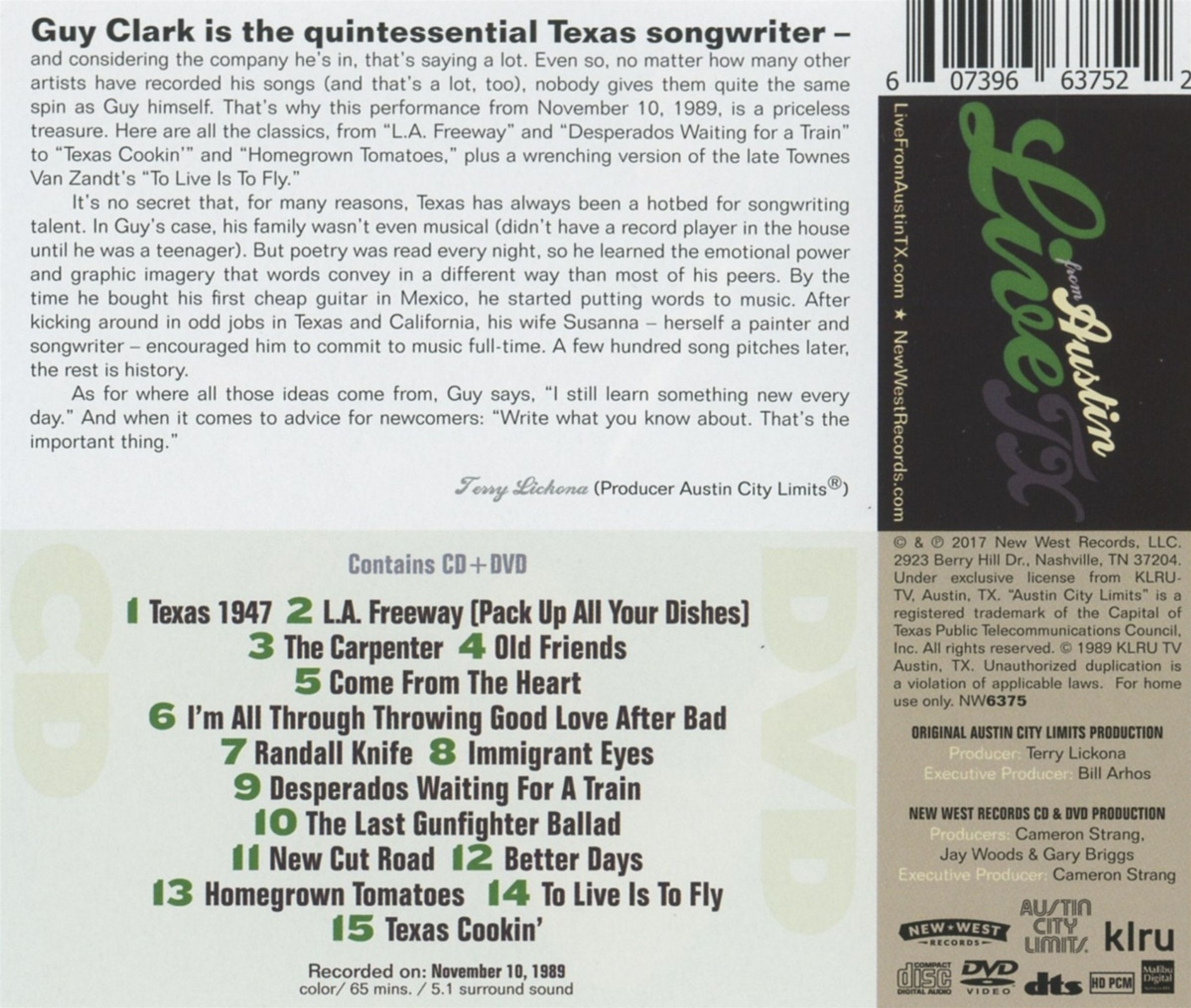 Guy Clark: Live From Austin, TX, 1989, 1 CD und 1 DVD