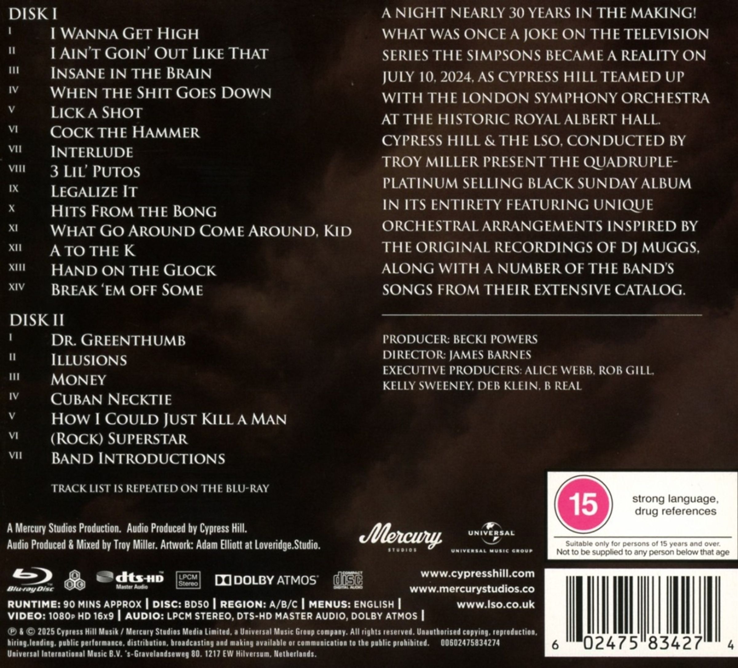 Ein Abend, der fast 30 Jahre auf sich warten ließ! Was einst ein Witz in der Fernsehserie »Die Simpsons« war, wurde am 10. Juli 2024 Wirklichkeit, als Cypress Hill zusammen mit dem London Symphony Orchestra in der historischen Royal Albert Hall auftrat.