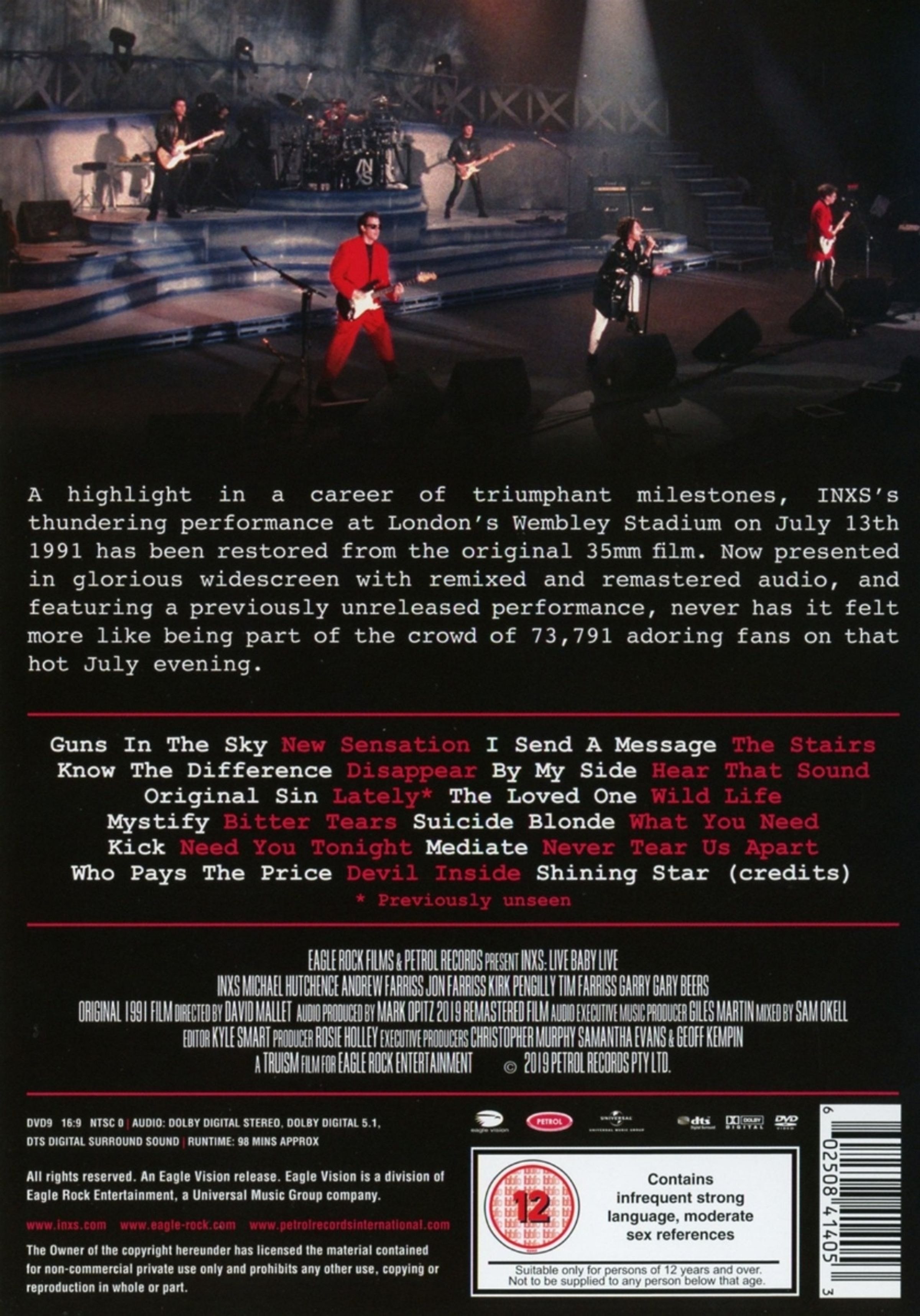 Am Samstag, dem 13. Juli 1991, lieferte INXS, eine der weltweit angesehensten und bekanntesten Bands, den Gig ihres Lebens im Londoner Wembley Stadion mit 74.000 begeisterte Fans. Nach anderthalb Jahrzehnten auf Tour war die Band auf dem Höhepunkt ihrer Live-Performance und die an diesem Tag gefilmten Auftritte zeigen nicht nur, dass sie eine Weltklasse-Stadionband sind, sondern auch, dass sie die einzige Band sind, die jemals den Mut hatte, vor 74.000 Zuschauern auf die Bühne des Wembley-Stadions zu gehen und ihr eigenes Intro zu jammen!