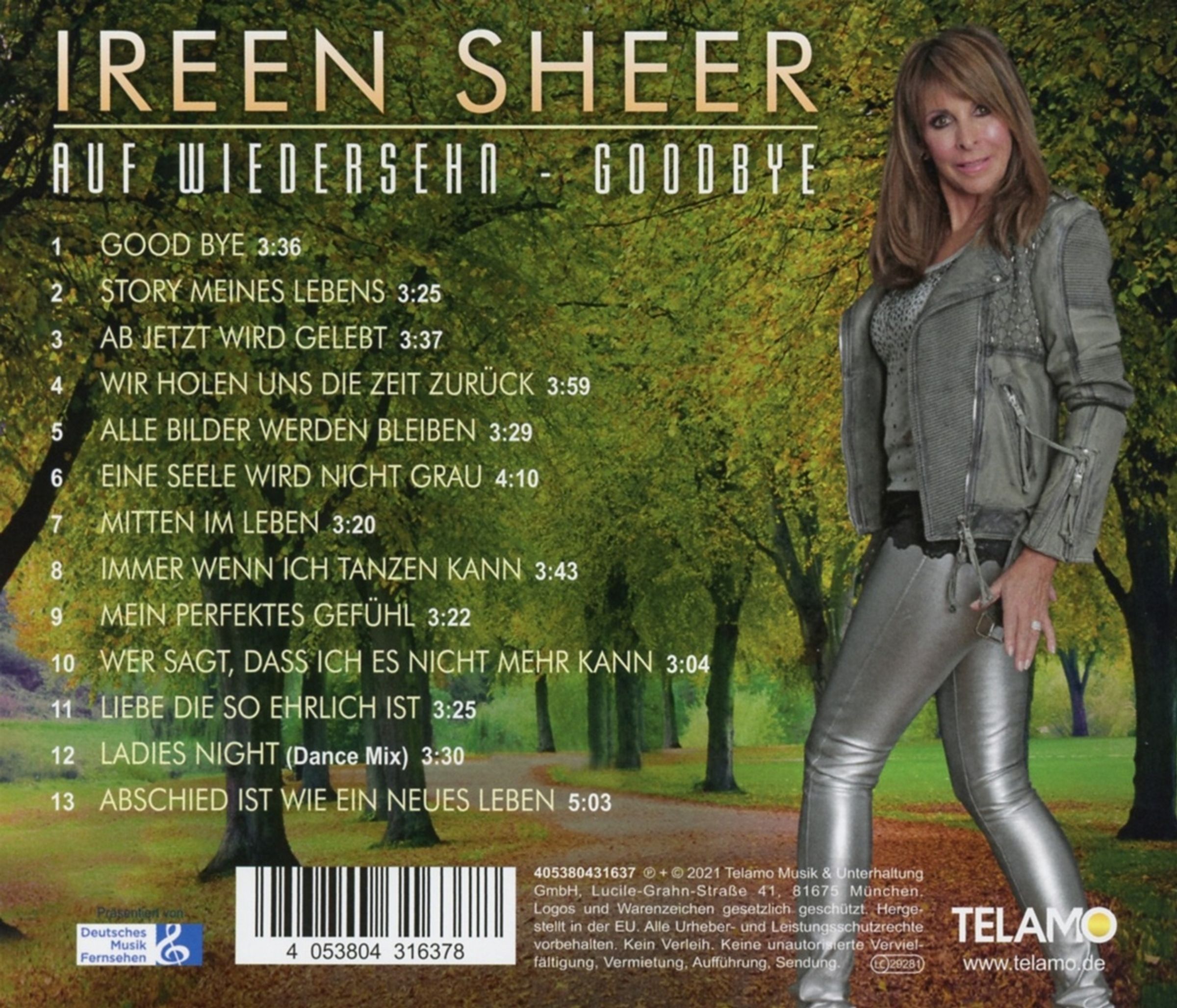 Eine der größten Ären der deutschsprachigen Musikgeschichte neigt sich dem Ende entgegen. Die Grande Dame des deutschen Schlagers Ireen Sheer verlässt die glitzernde Showbühne und wird nun ihr letztes brillantes Studio-Album "Auf Wiedersehn-Goodbye" bei Telamo veröffentlichen.