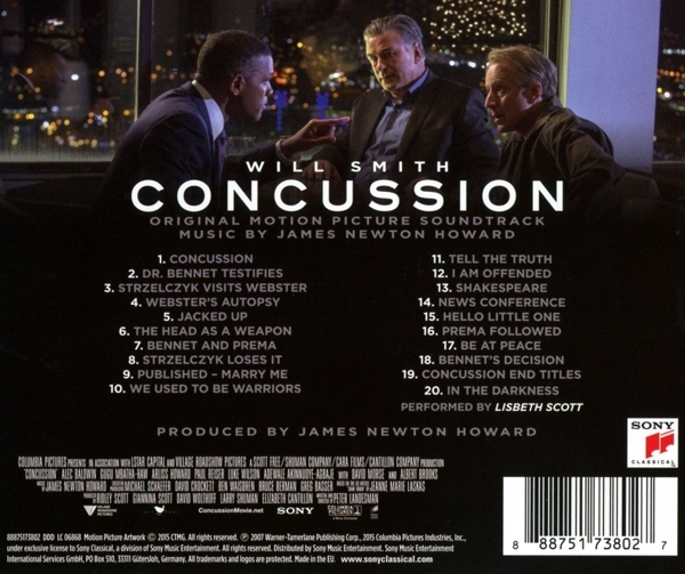 Das Drama »Erschütternde Wahrheit« (Originaltitel: Concussion) mit Will Smith in der Hauptrolle beruht auf wahren Begebenheiten, die sich in der amerikanischen Football-Liga zutrugen. Smith wurde für seine Darstellung als forensischer Pathologe und Neurowissenschaftler Dr. Bennet Omalu, der auf die furchtbaren Folgen wiederholten traumatischen Hirnschädigungen bei Footballspielern hinwies und damit die Institution NFL gegen sich aufbrachte, für einen Golden Globe nominiert. Der passende Soundtrack zu der spannenden David-gegen-Goliath-Geschichte stammt von James Newton Howard. Mit über 70 geschriebenen Soundtracks (u. a. »Pretty Woman«, »Batman Begins«, »The Hunger Games«) und Zusammenarbeiten mit Stars wie Jennifer Lawrence, Barbra Streisand oder Cher gehört er zu einen der gefragtesten Filmkomponisten.