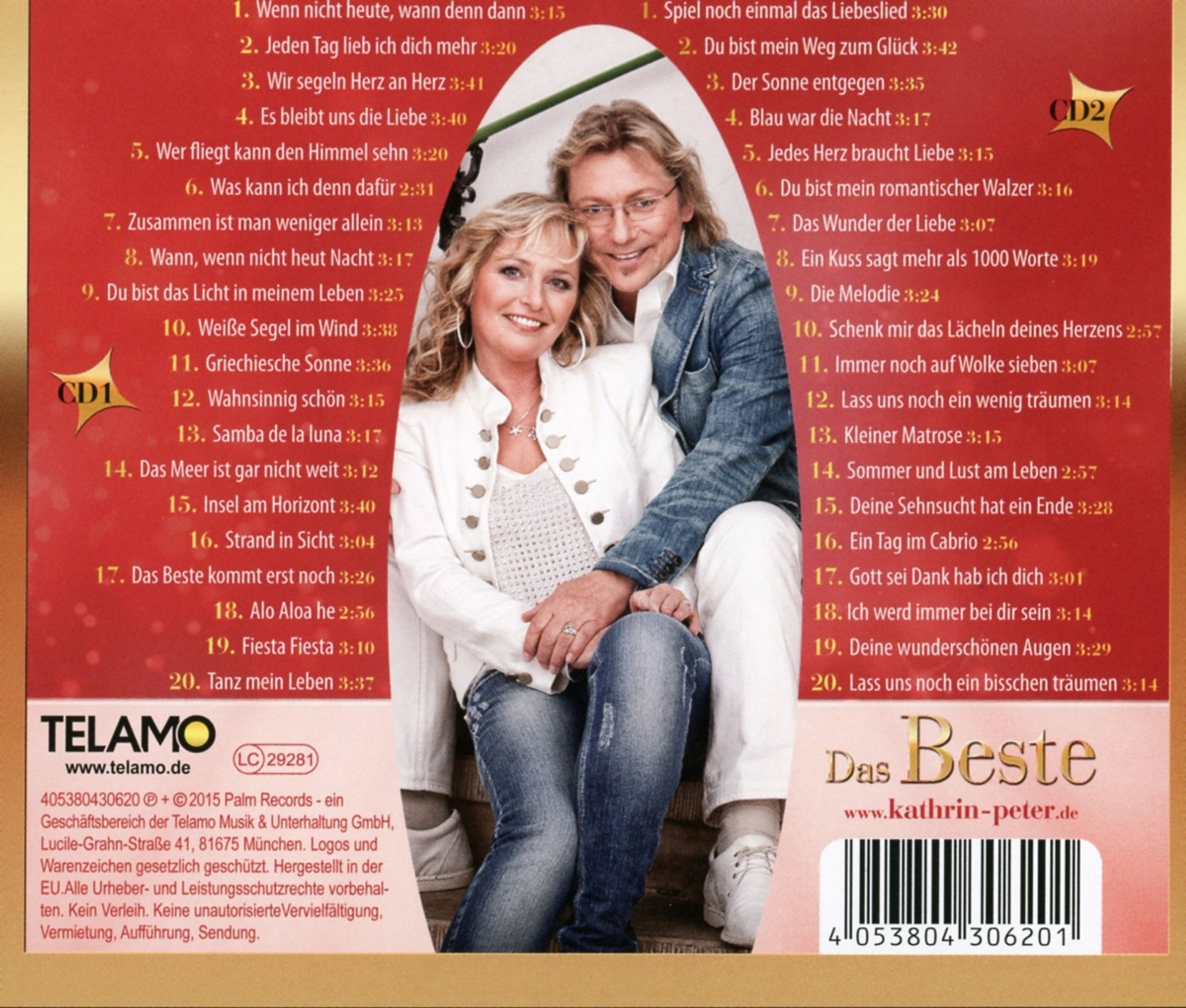 Wenn man als Erfolgsduo auf Ihre Karriere zurückblicken kann, die von 150 TV-Auftritten, vielen Top-Singles, die sich monatelang in den Airplay-Charts hielten, und über 1000 Live-Auftritten geprägt ist, dann ist es kein so einfaches Unterfangen, all das in einer einzigen Compilation zusammenzufassen. Kathrin und Peter haben dennoch besonderes Fingerspitzengefühl bewiesen und eine Doppel-CD-Box der Extraklasse zusammengestellt, die schlicht und einfach genau das enthält, was uns der Titel bereits verrät: Das Beste.