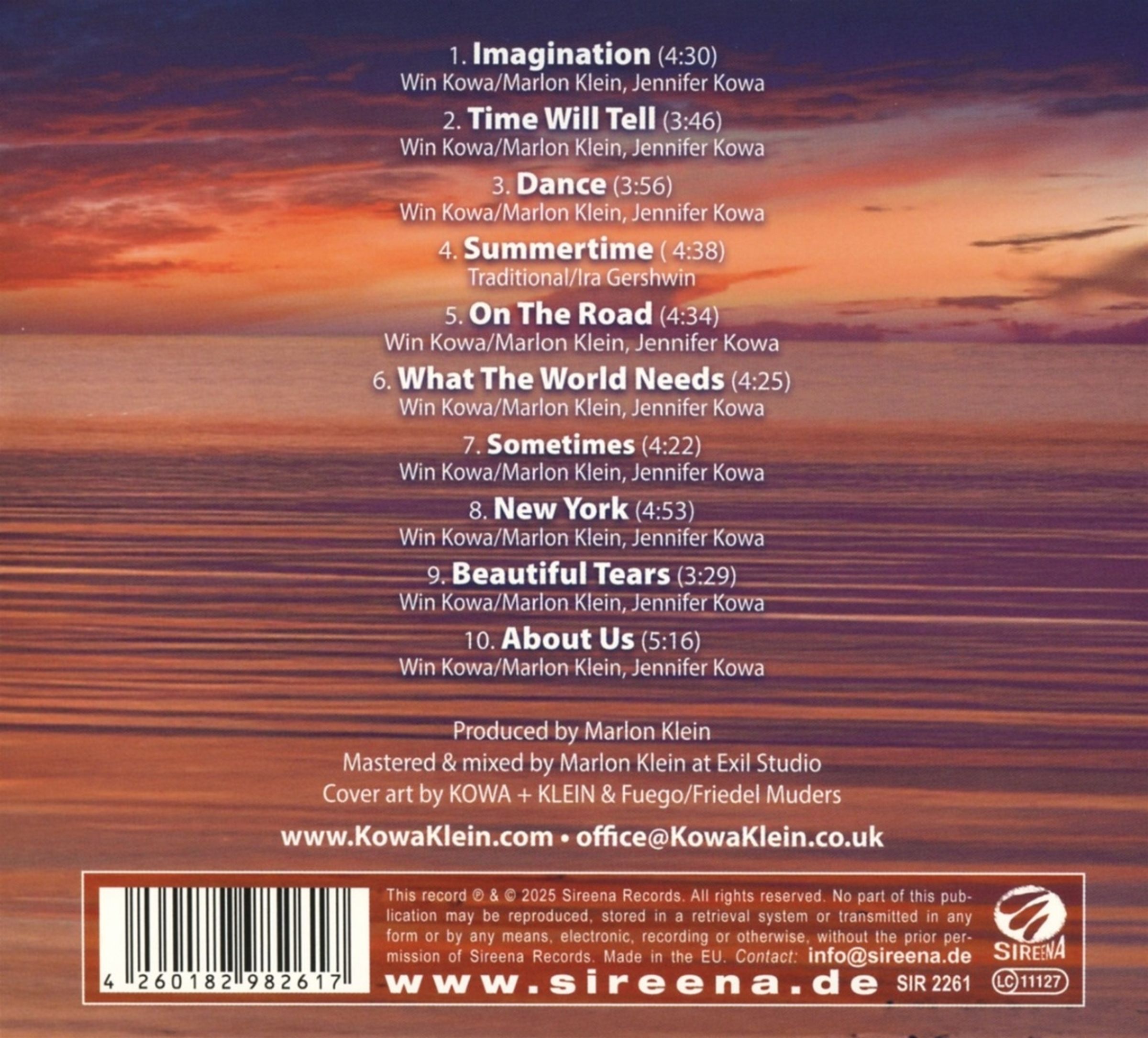 Das erste Lebenszeichen des Projektes erscheint als CD und LP auf dem Bremer Label Sireena. Mit »Summertime« erscheint das Debütalbum des All-Star-Projekts Kowa + Klein. Hinter dem Namen stehen zwei prägende Musikerpersönlichkeiten: Win Kowa, Gitarrist, Keyboarder und Komponist, bekannt als Gründungsmitglied von Straight Shooter, später bei Streetmark und Octopus aktiv, sowie Produzent erfolgreicher Chillout-Compilations wie Café del Mar. Gemeinsam mit seiner Frau Jennifer Kowa, charismatische Stimme der Prog-Rock-Band Octopus, prägte er über Jahrzehnte die deutsche Musikszene. Marlon Klein, Mitglied der Real Ax Band und der legendären Dissidenten, arbeitete als Produzent und Mastering-Spezialist an über 1000 Alben. Die Zusammenarbeit am Album Stay Strong von Jennifer Kowa führte 2023 zu einer engen musikalischen Partnerschaft zwischen Win und Marlon.