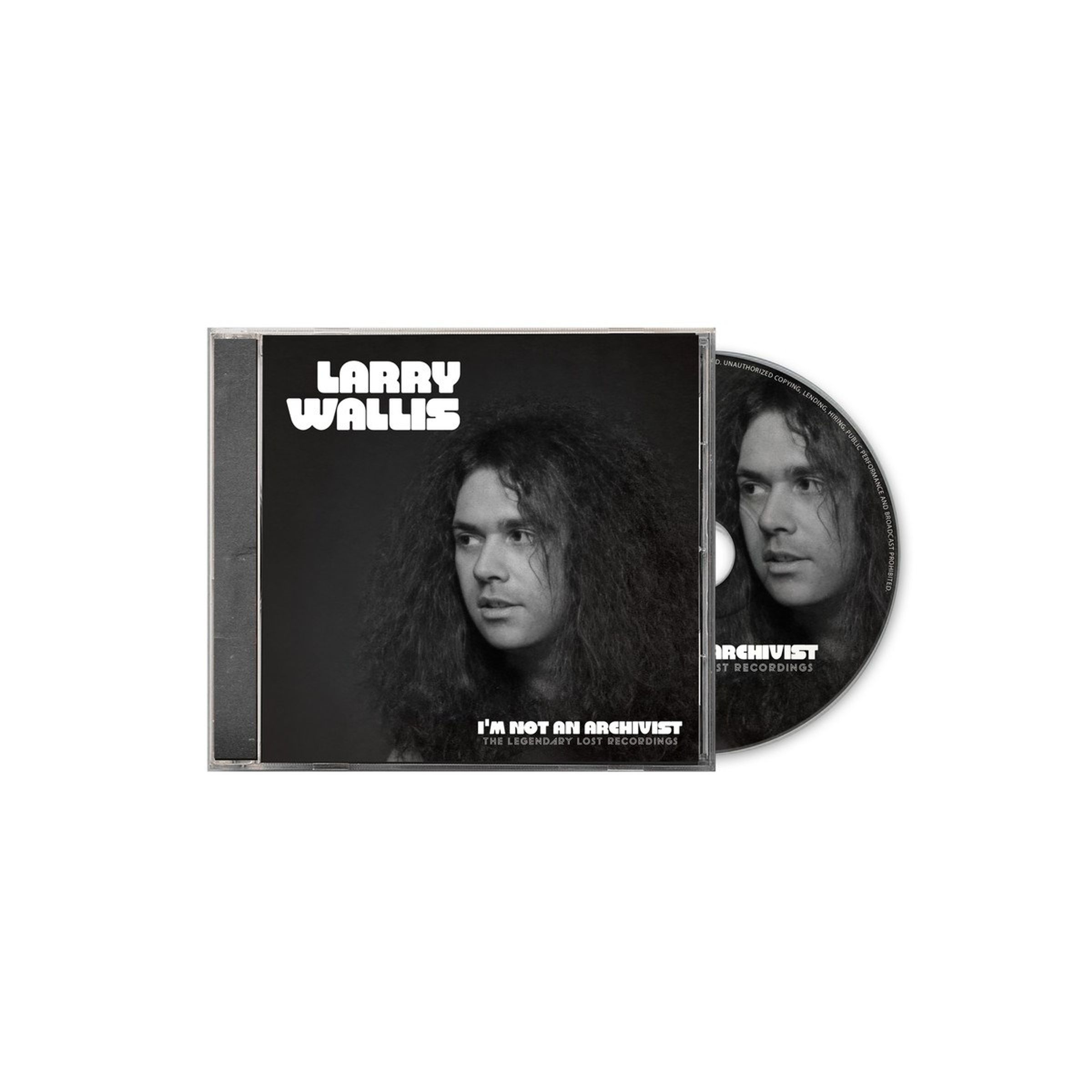 Der Text lautet: "LARRY WALLIS" und "I'M NOT AN ARCHIVIST - THE LEGENDARY LOST RECORDINGS". Cover zeigt einen Mann mit langen Haaren., CD