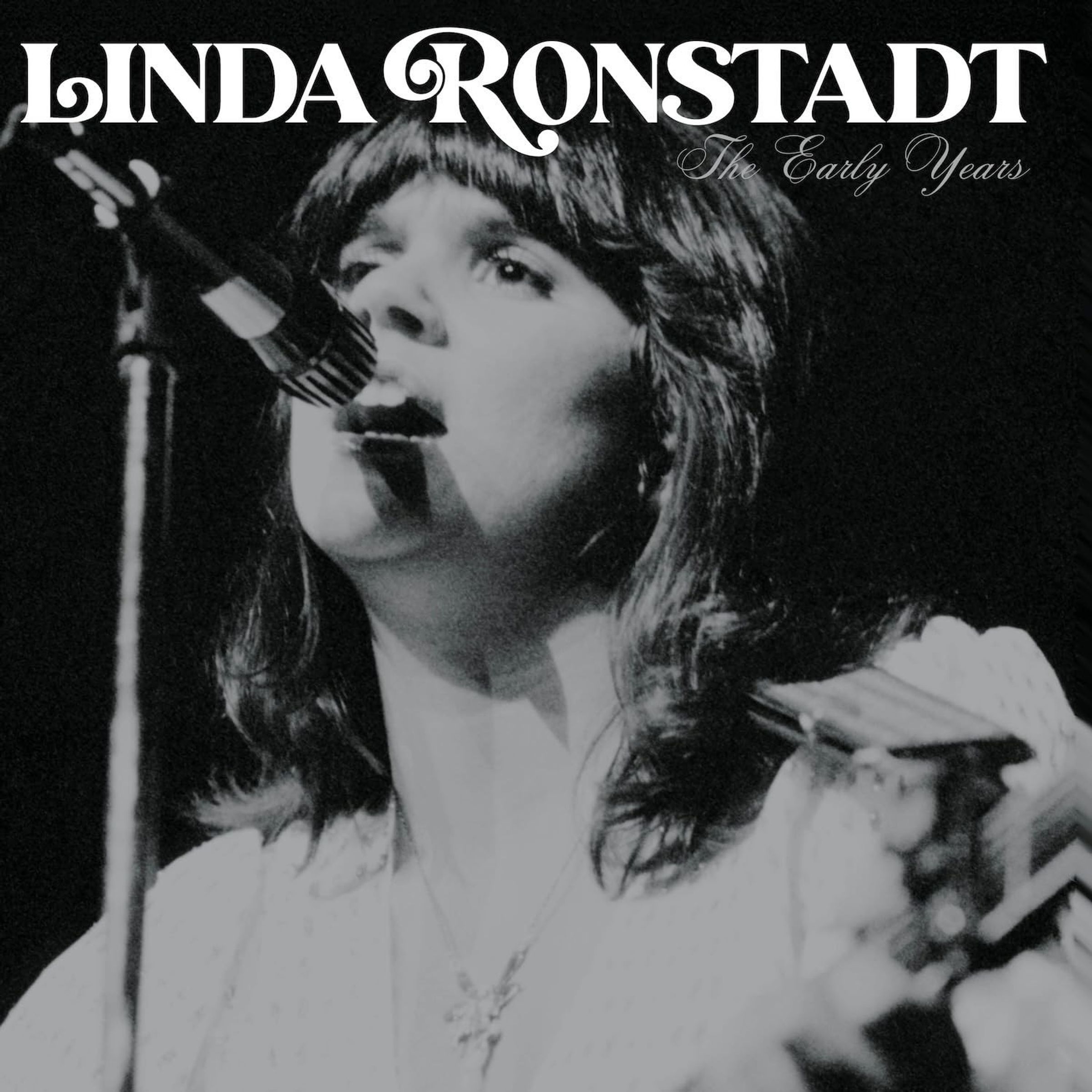 "Linda Ronstadt", "The Early Years" steht oben, darunter singt eine Frau in ein Mikrofon. Schwarz-weiß., CD
