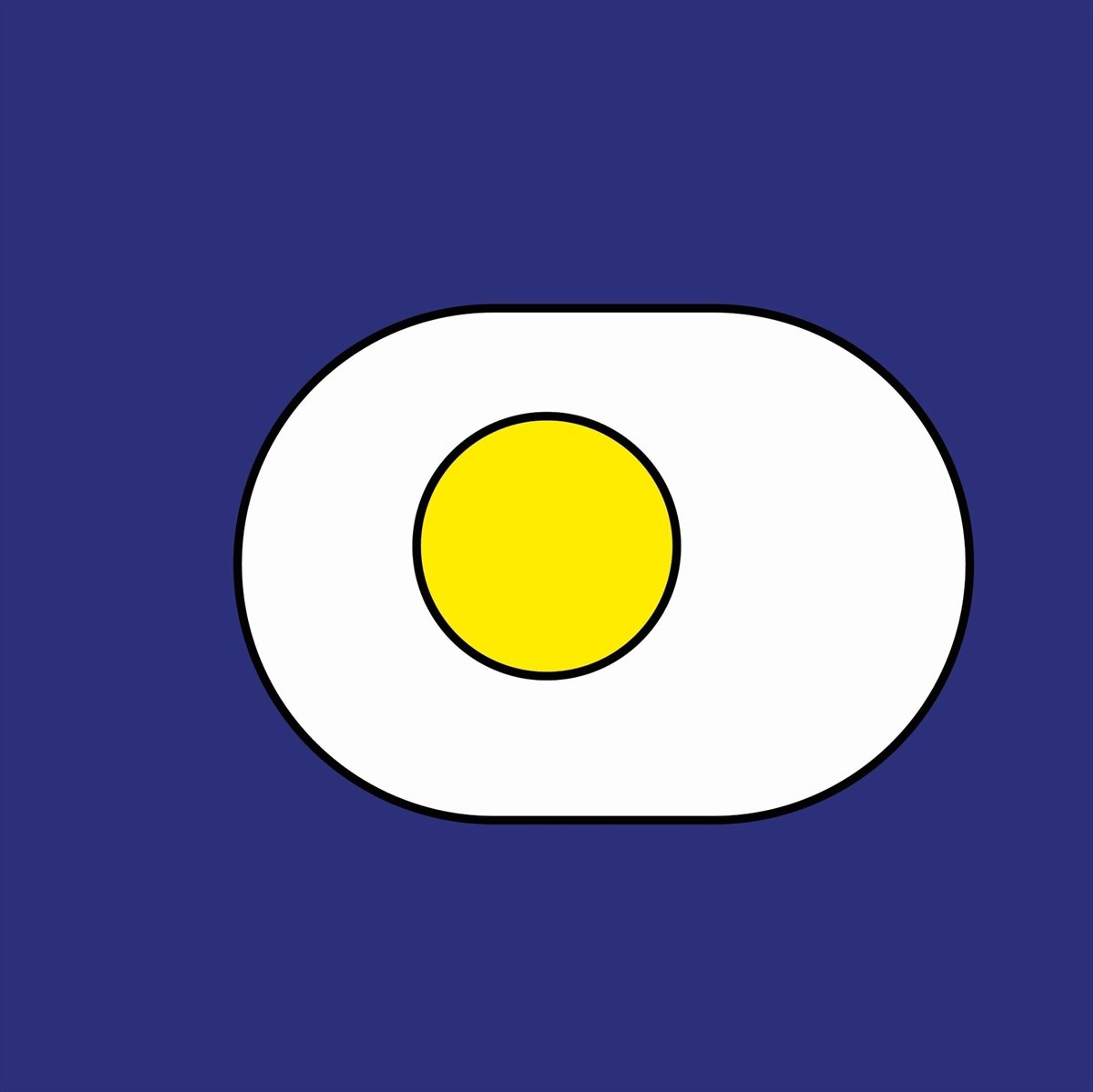 Illustration: Weißes Oval mit gelbem Kreis auf dunkelblauem Hintergrund, erinnert an ein Spiegelei., CD