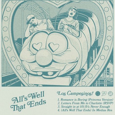 Neben der Neuveröffentlichung des Albums »Romance Is Boring« bringen die Waliser Indierock-Nerds von Los Campesinos! zum zehnjährigen Jubiläum des Albums auch die lange vergriffene EP »All’s Well That Ends«, die Akustik-Versionen von vier Album-Songs enthält, in einer neu gemasterten Version via Wichita Recordings heraus.