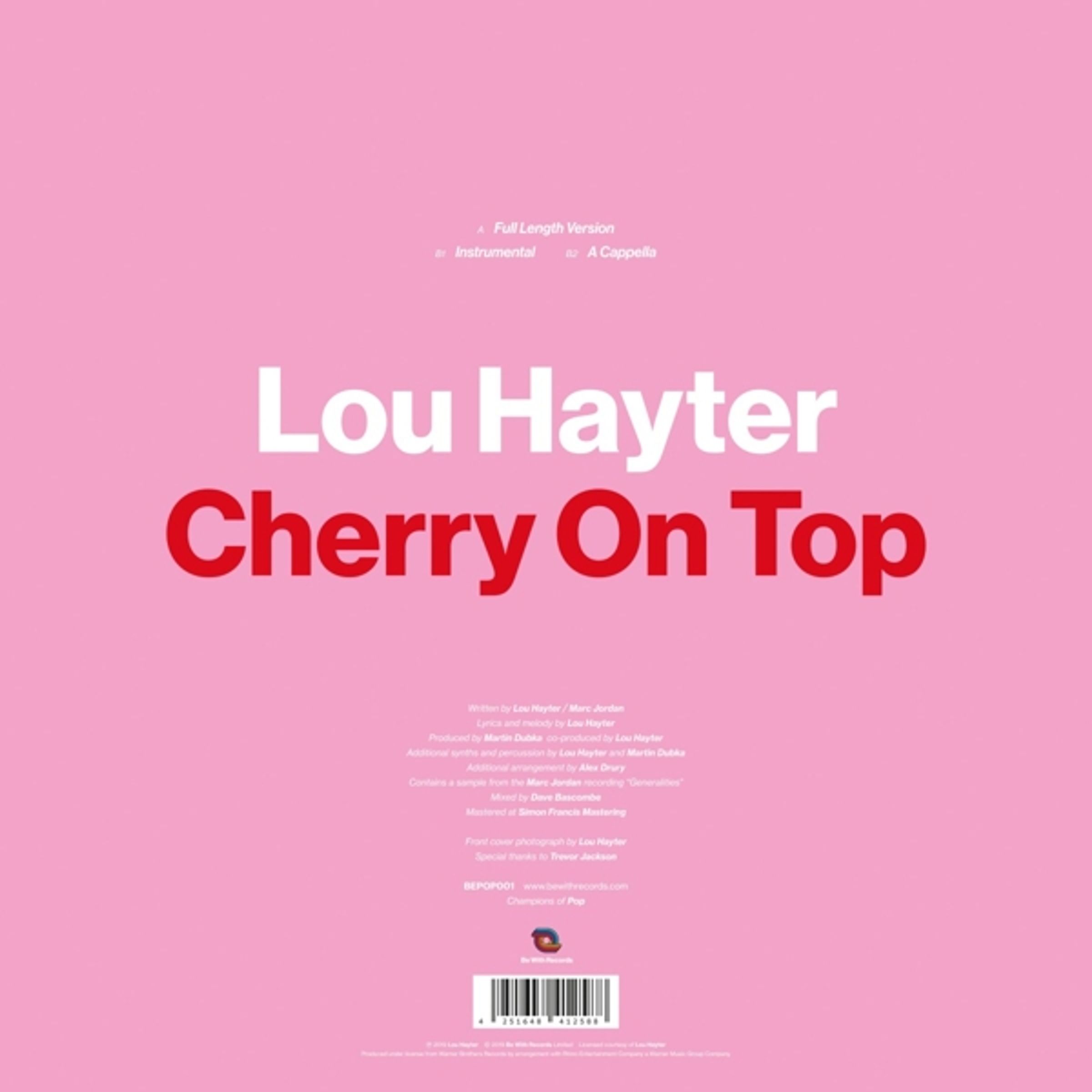 Be With Records startet mit Be Pop ein neues Sublabel für frische Pop-Musik. Der erste Release von Lou Hayter (New Young Pony Club, Tomorrow's World) ist ein funky Soft-Disco-Track für den Spätsommer und basiert auf einem Sample des Yachtpop-Klassikers »Generalities« von Marc Jordan. Weisses Vinyl mit Original, Instrumental & Acapella.