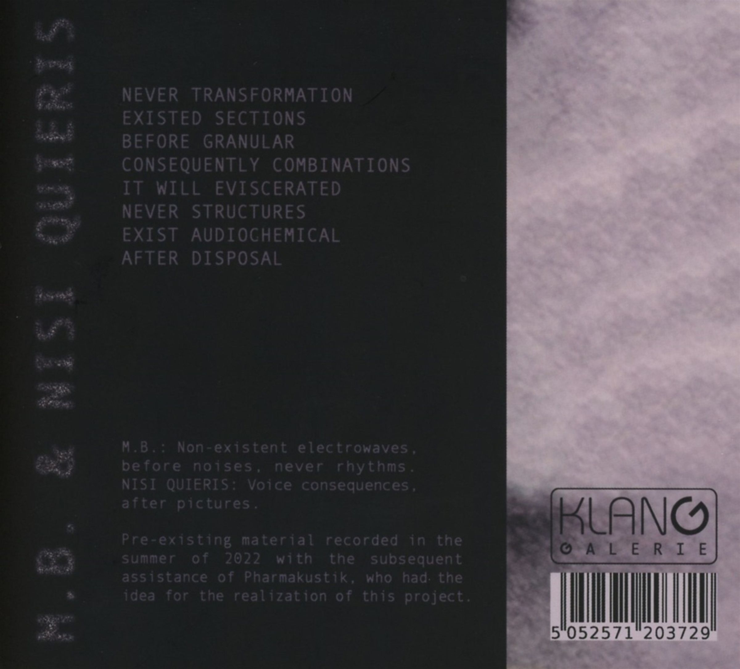 M.B. & Nisi Quieris: Never Existed Before Consequently It Will Never Ex auf CD
