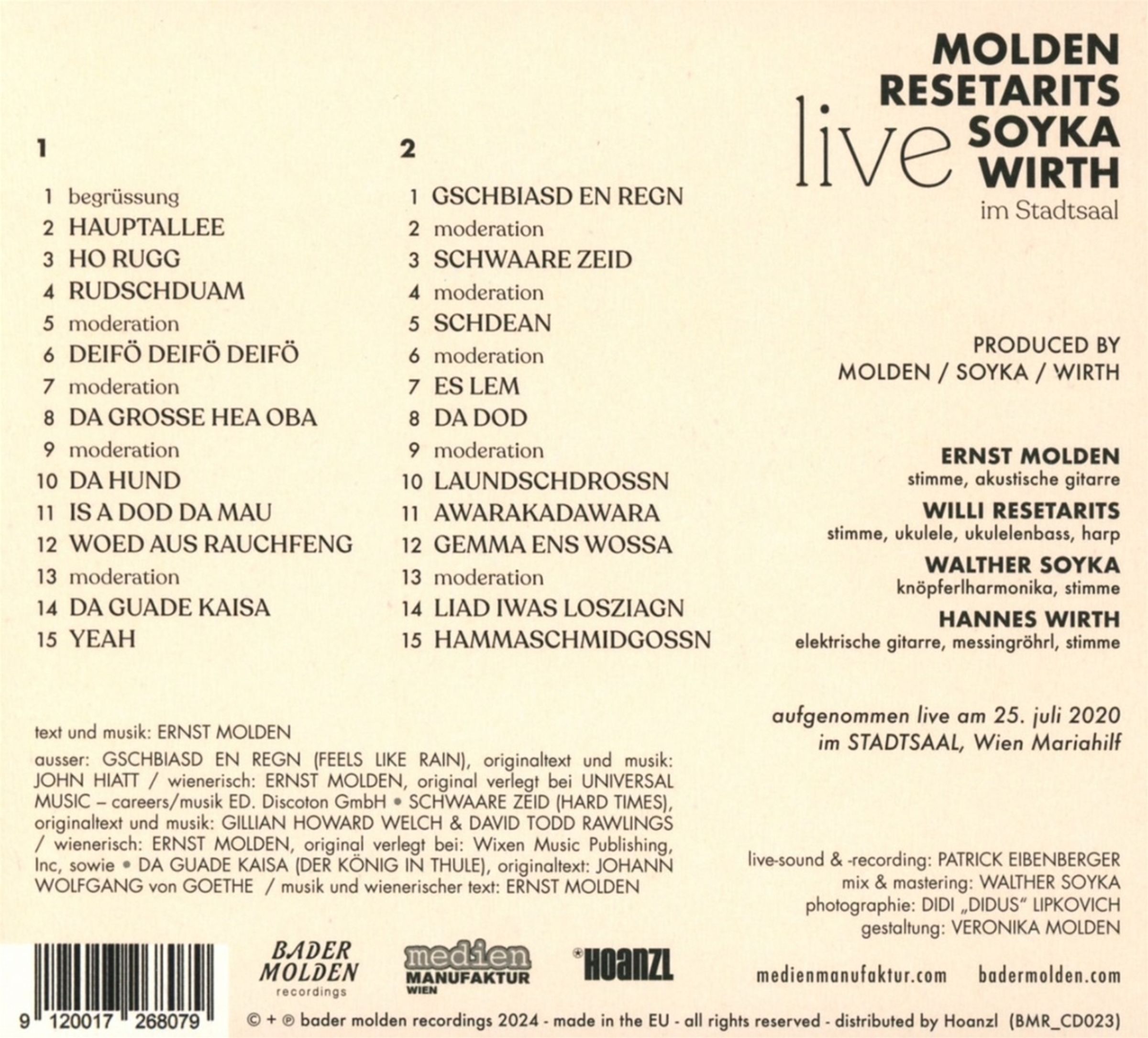 Molden, Resetarits, Soyka & Wirth: Live im Stadtsaal auf 2 CDs