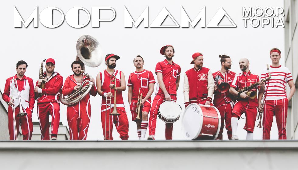 Sie sind die Pioniere des Urban Brass: Moop Mama. 2016 geht die Münchener Kapelle mit einem neuen Album an den Start. »M.O.O.P.topia« heißt der Nachfolger von »Deine Mutter« (2011) und »Das rote Album« (2013).